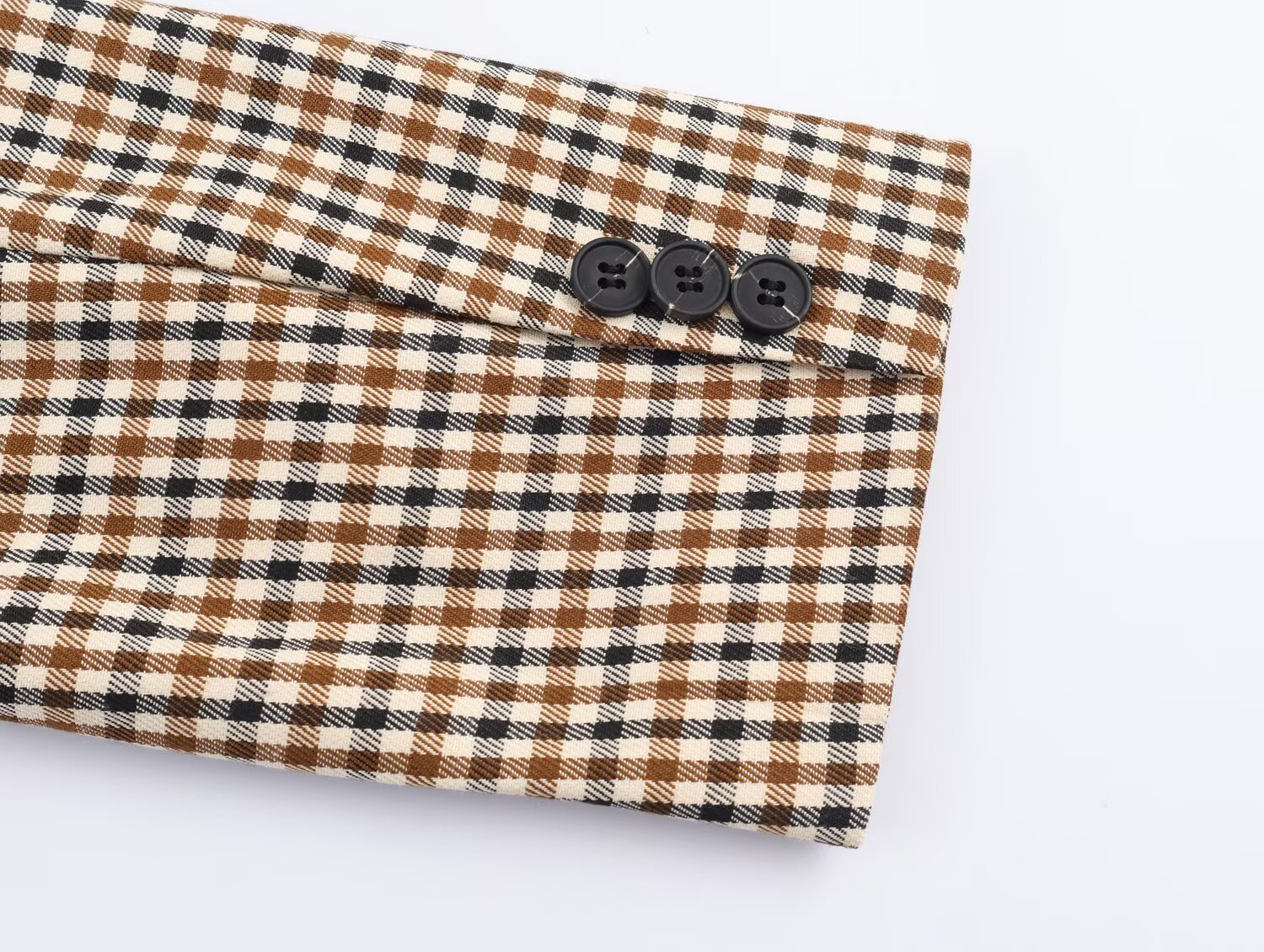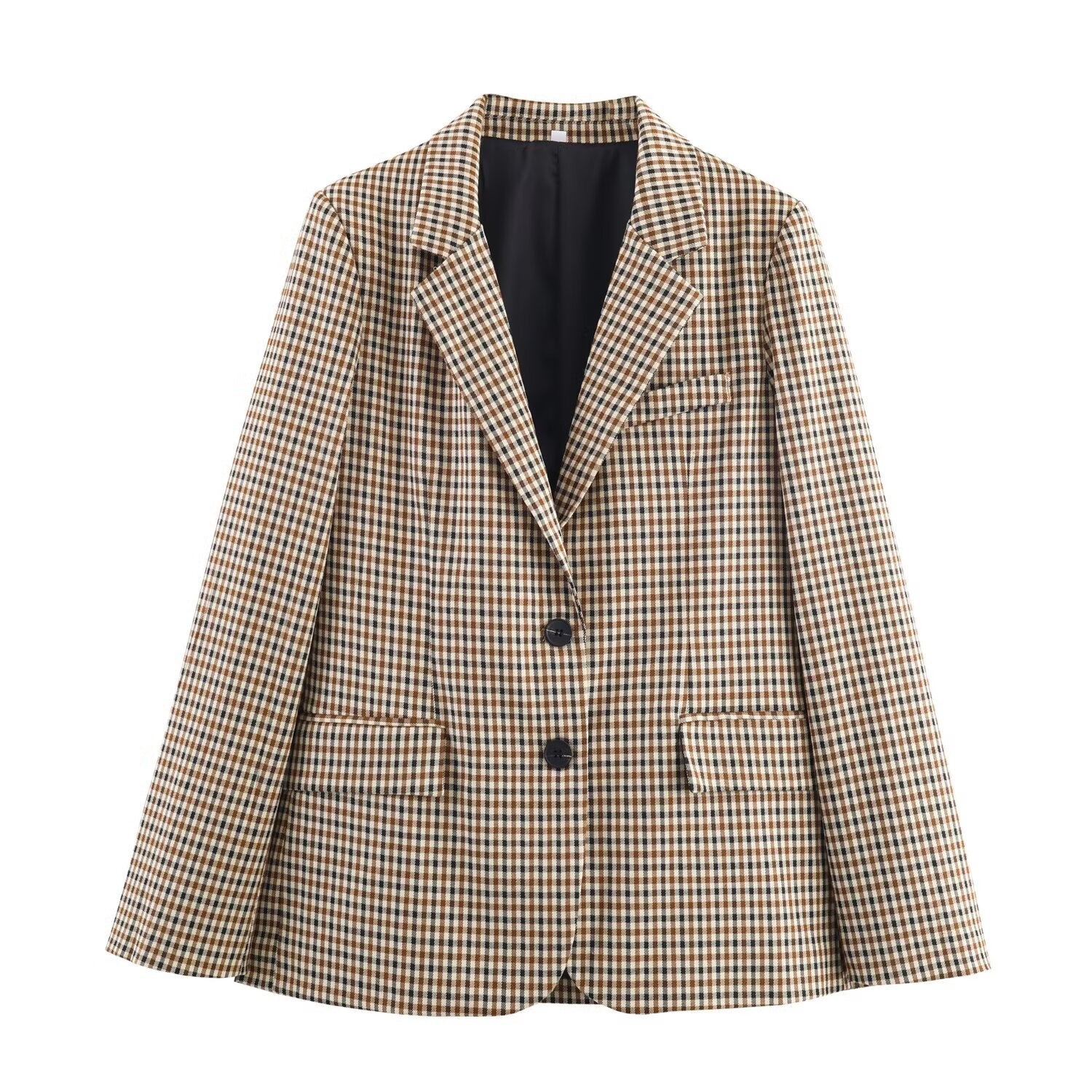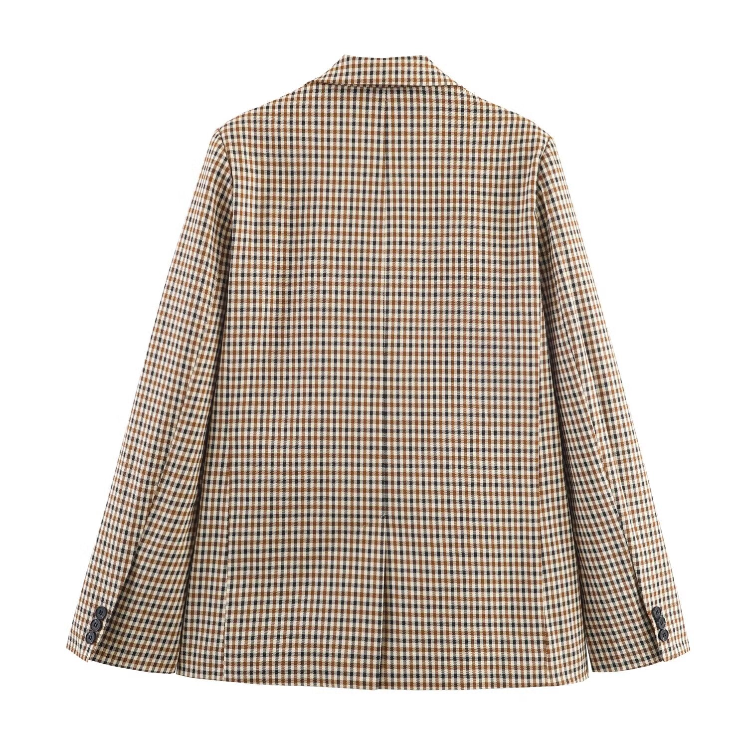 Women's new fashion loose single breasted checkered suit jacket+Pants suit