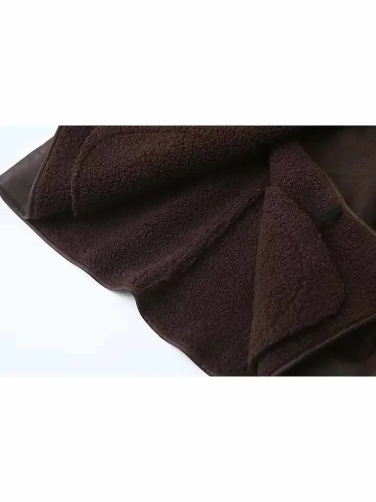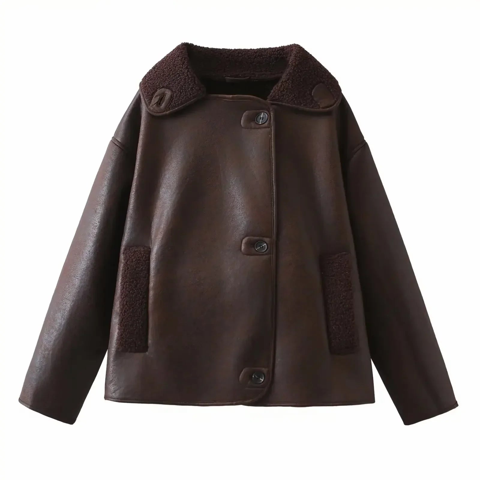 Women's new Fashion loose single breasted double-sided Fur Faux Leather jacket coat retro long sleeved women's coat chic top