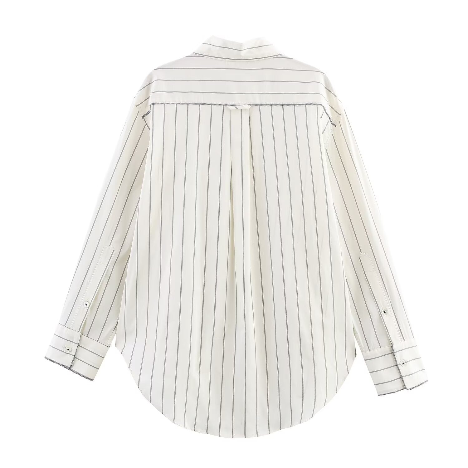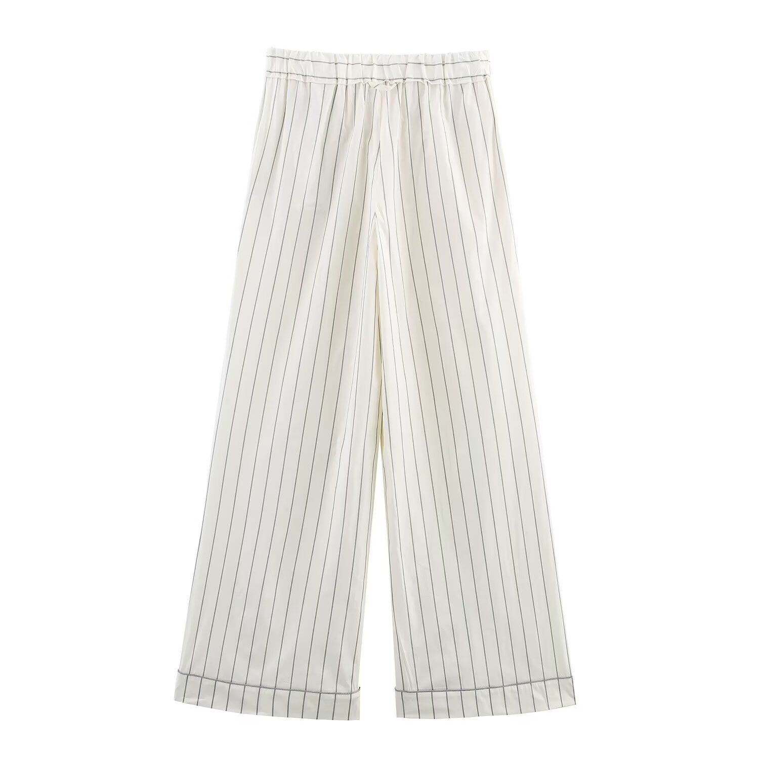 Women's new fashion loose single breasted long sleeved striped shirt+Pants suit