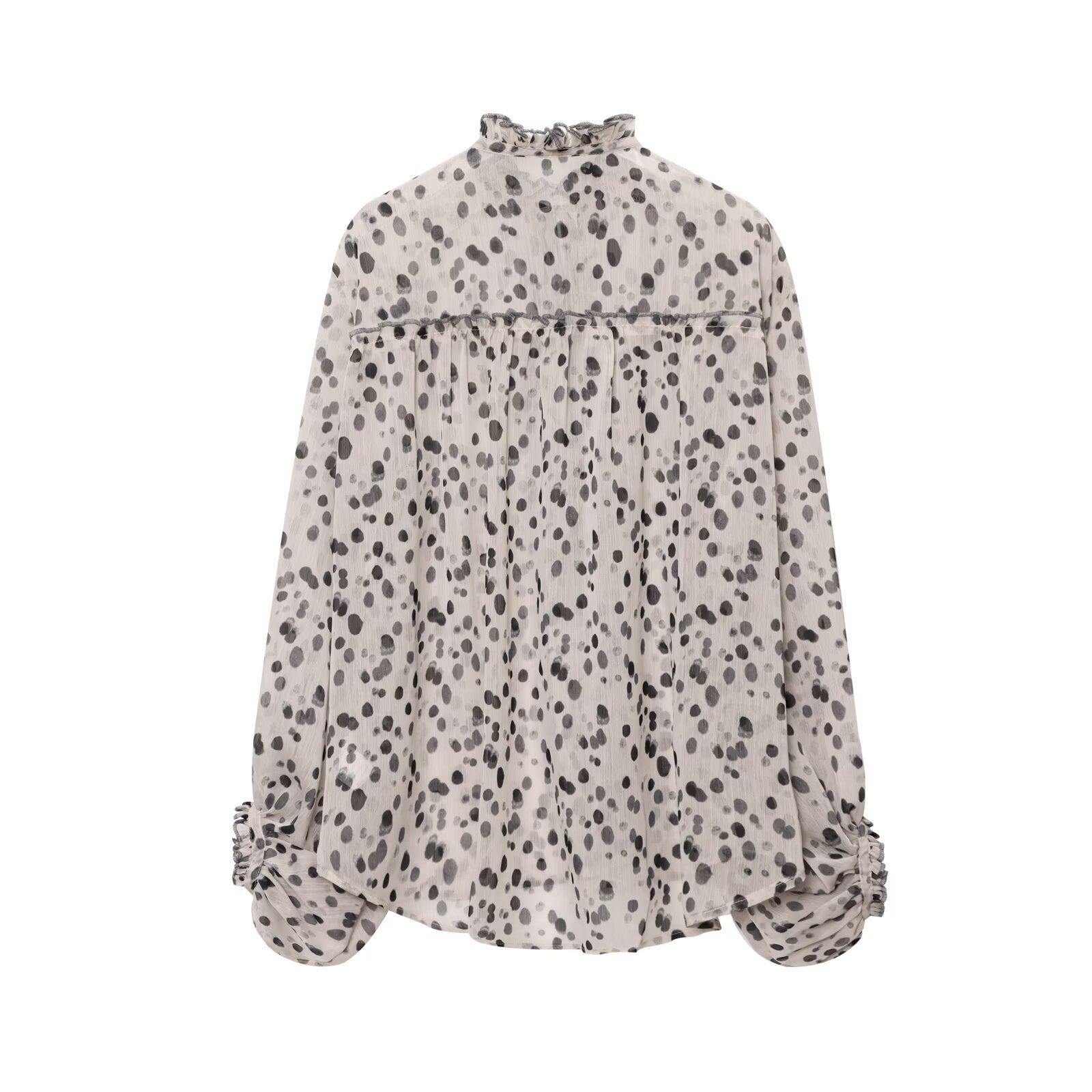 Women's New Fashion loose single breasted stand collar polka dot printed shirt