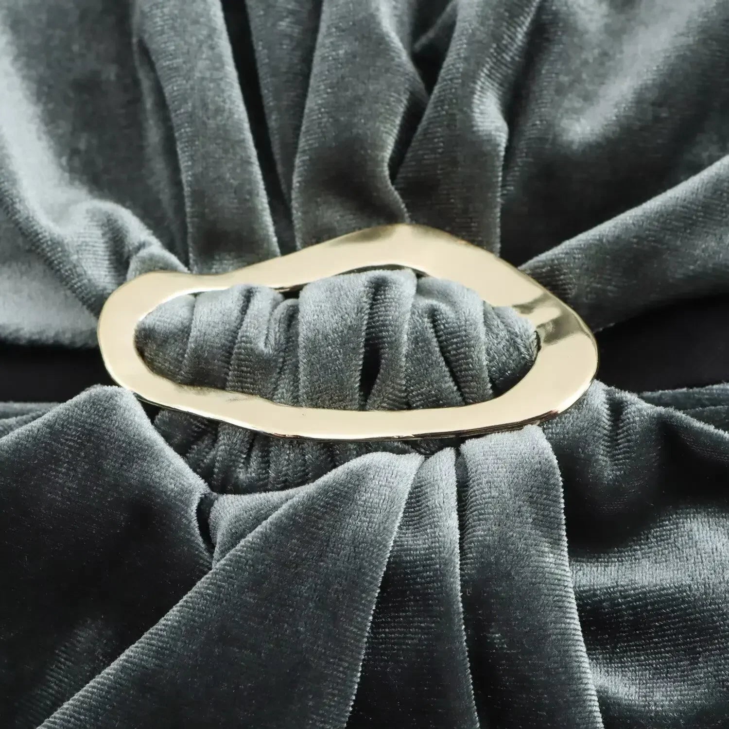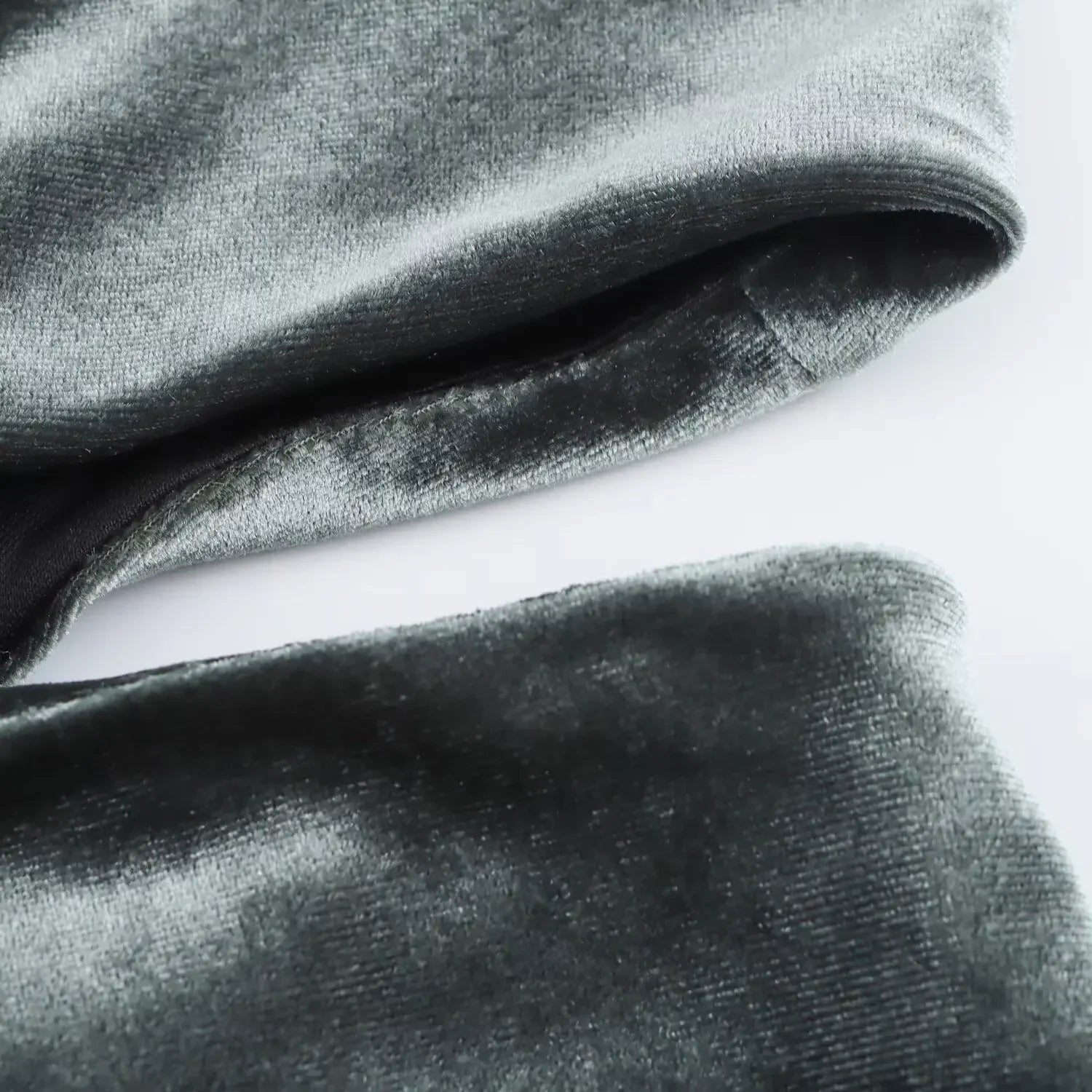 Women's new fashion metal buckle decoration slim pleated velvet Midi dress retro O-Neck sleeveless women's dress Mujer
