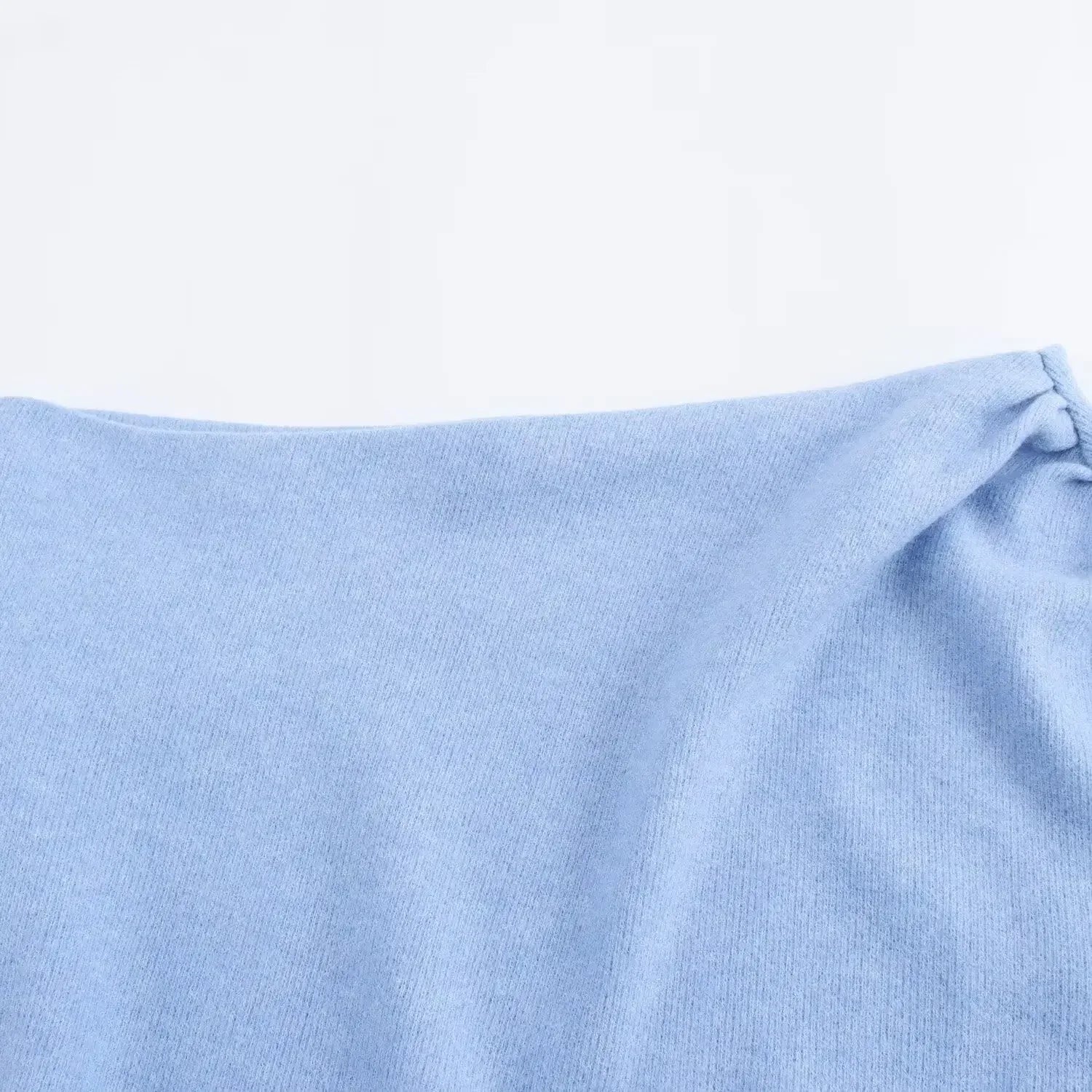 Women's new fashion pleated decoration slim soft texture asymmetric knitted top retro long sleeved women's pullover chic top