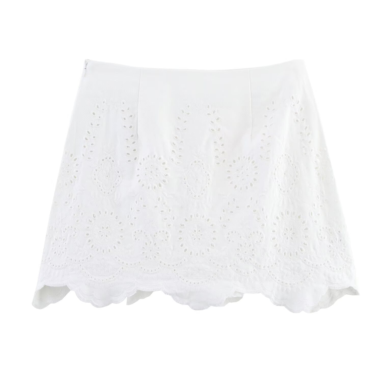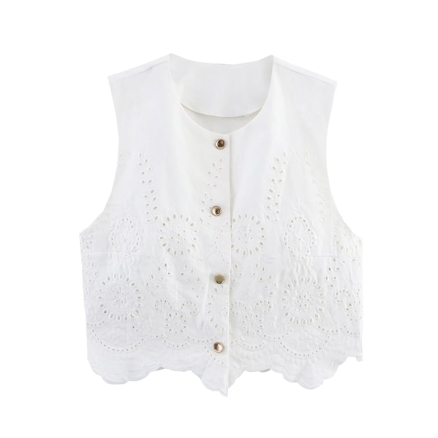 Women's New Fashion Short Hollow Embroidered Vest style Top+Shorts Skirts suit