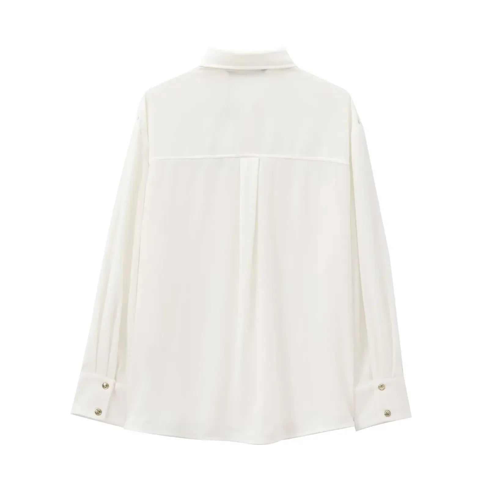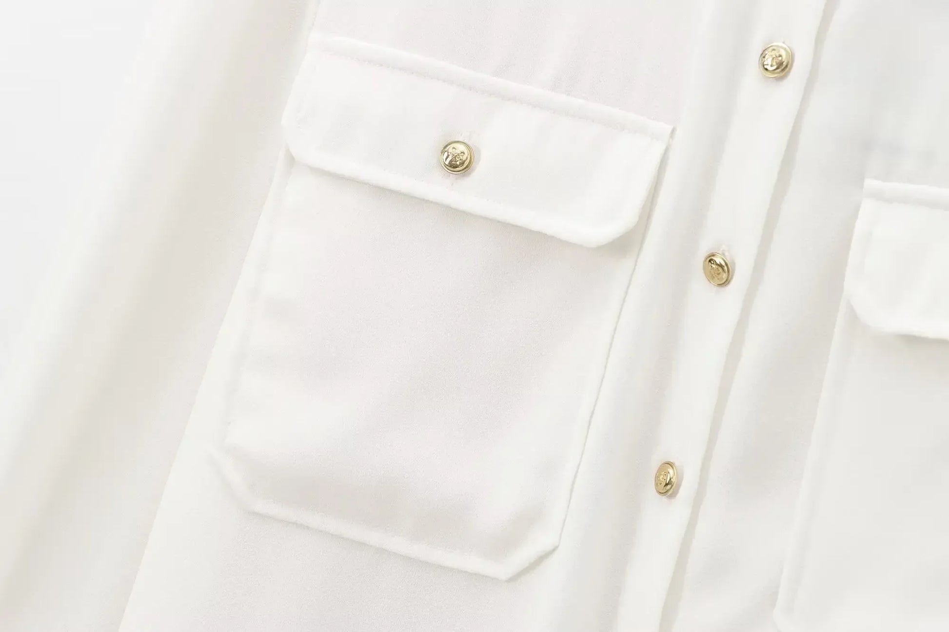Women's new fashion shoulder chain decoration loose Single breasted crepe shirt retro long sleeved Pocket women's shirt chic top
