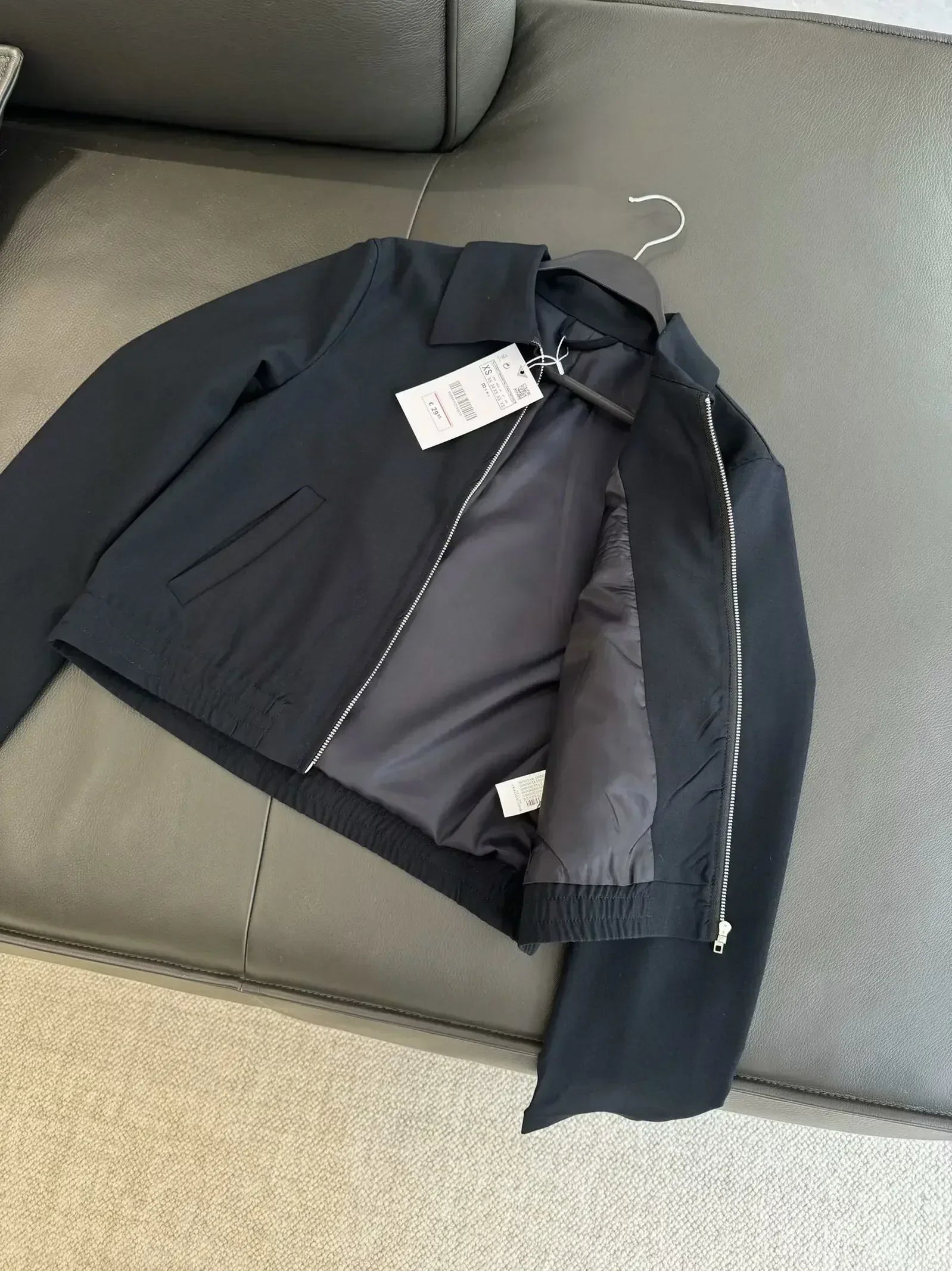 Women's new fashion side pocket decoration casual short lapel jacket coat retro long sleeved zipper women's coat chic top