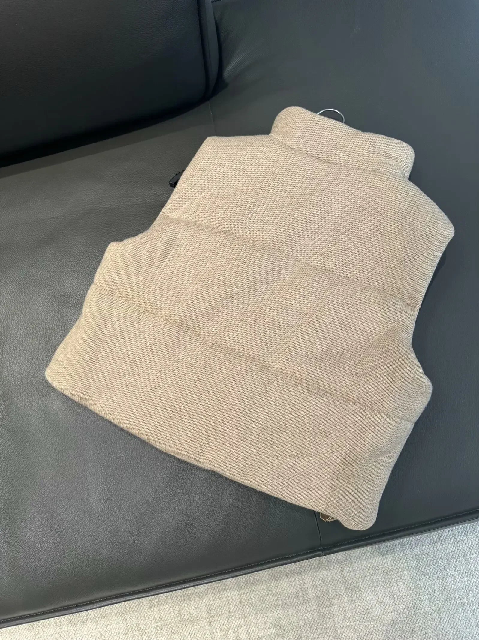 Women's new fashion side pocket short stand collar knitted cotton vest coat retro sleeveless zipper women's vest chic top