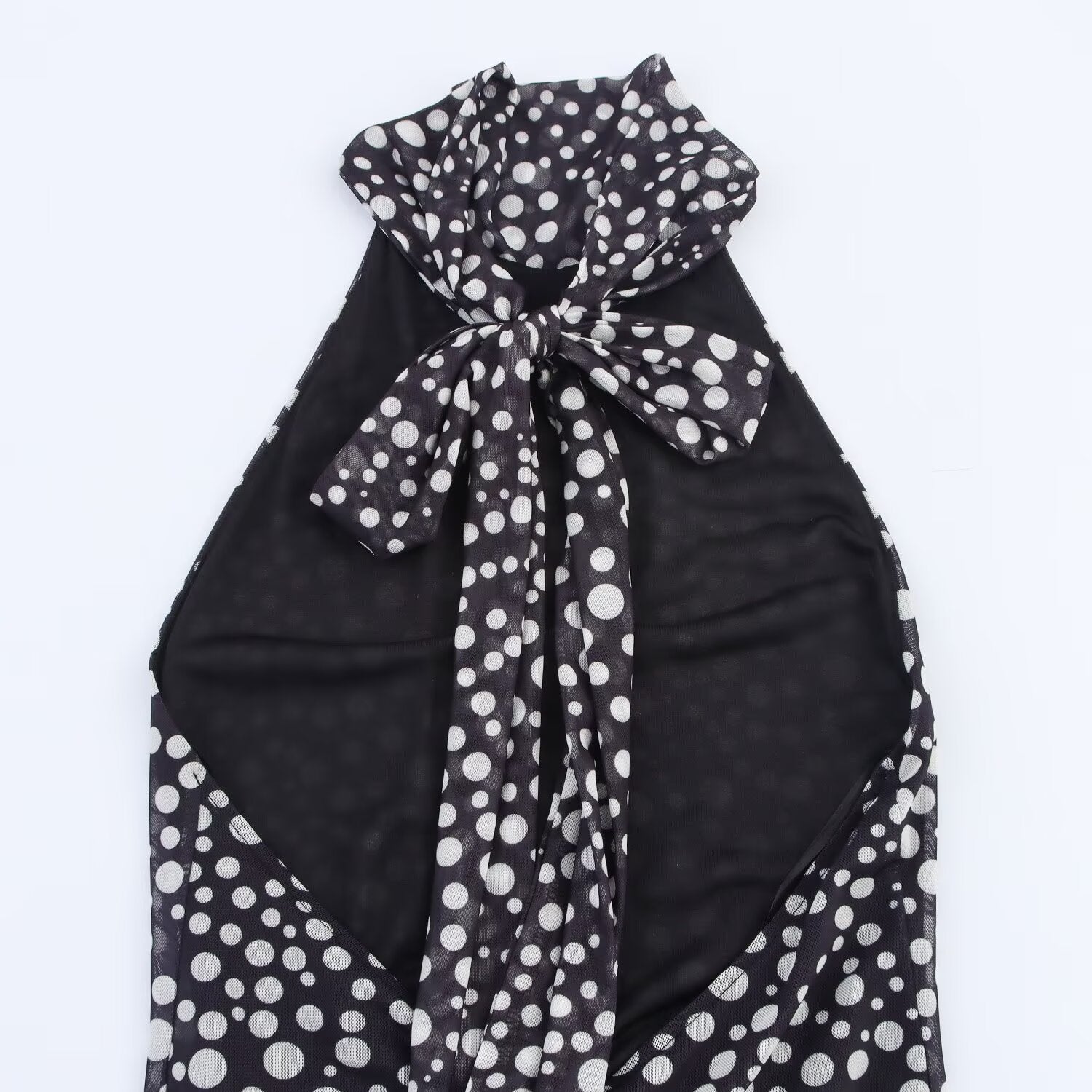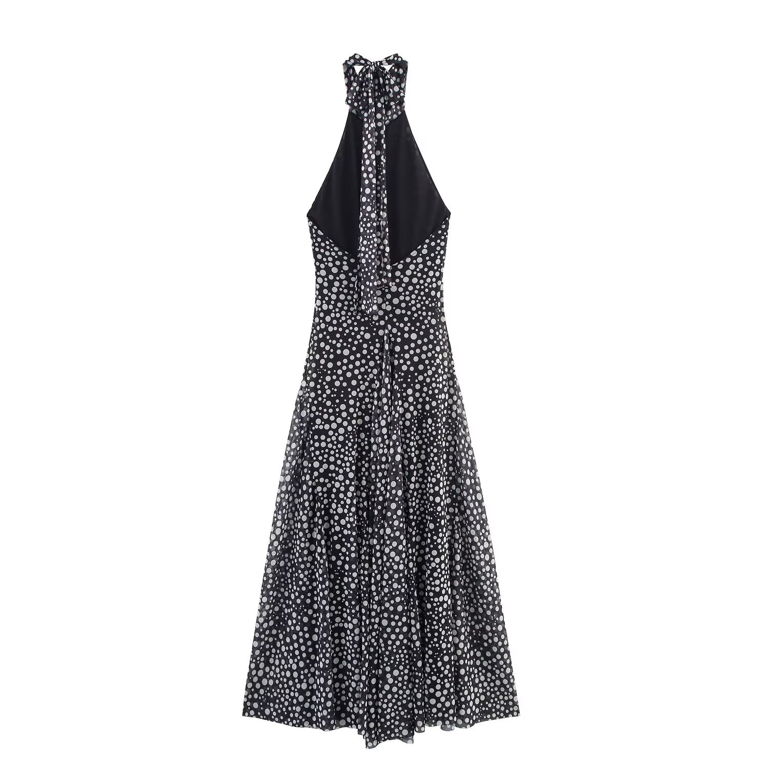 Women's' new fashion sleeveless backless polka dot print hanging neck MIDI dress