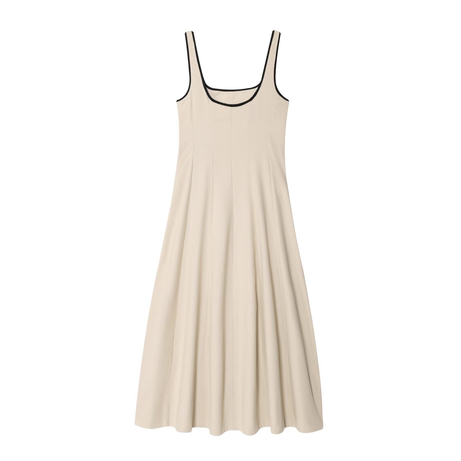 Women's new fashion sleeveless backless wide shoulder strap MIDI dress
