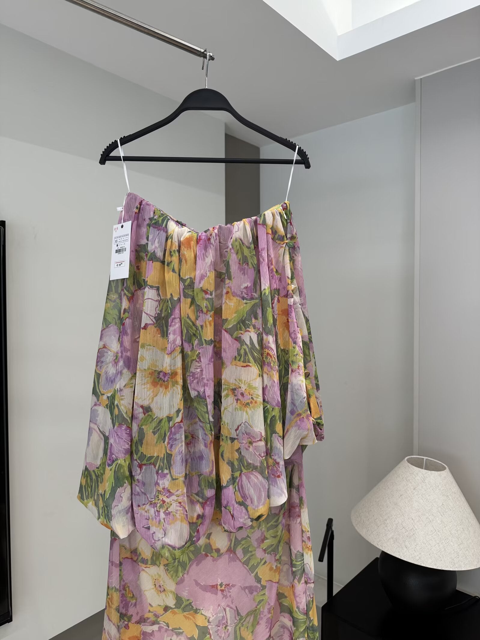 Women's New Fashion Sleeveless Flower Printed suspender Midi Dress