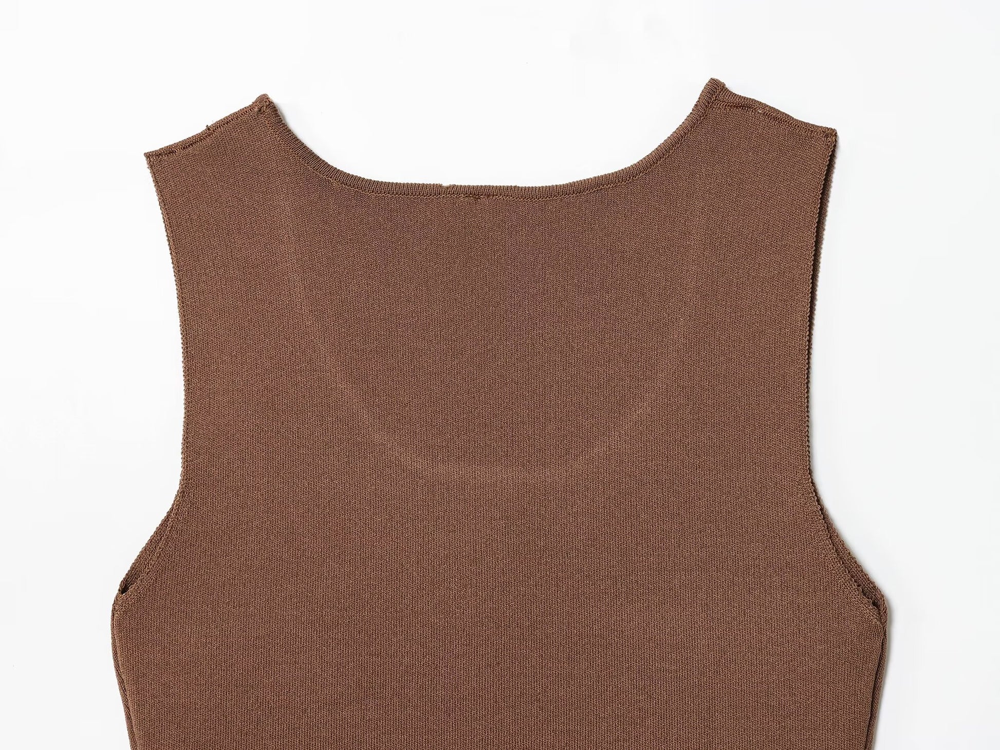 Women's New Fashion Sleeveless Knitted Splicing Midi Dress
