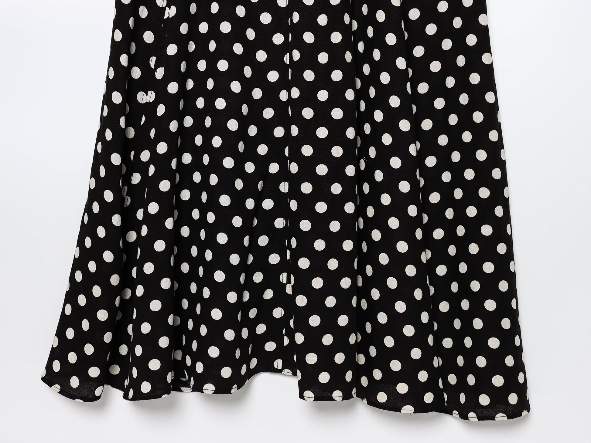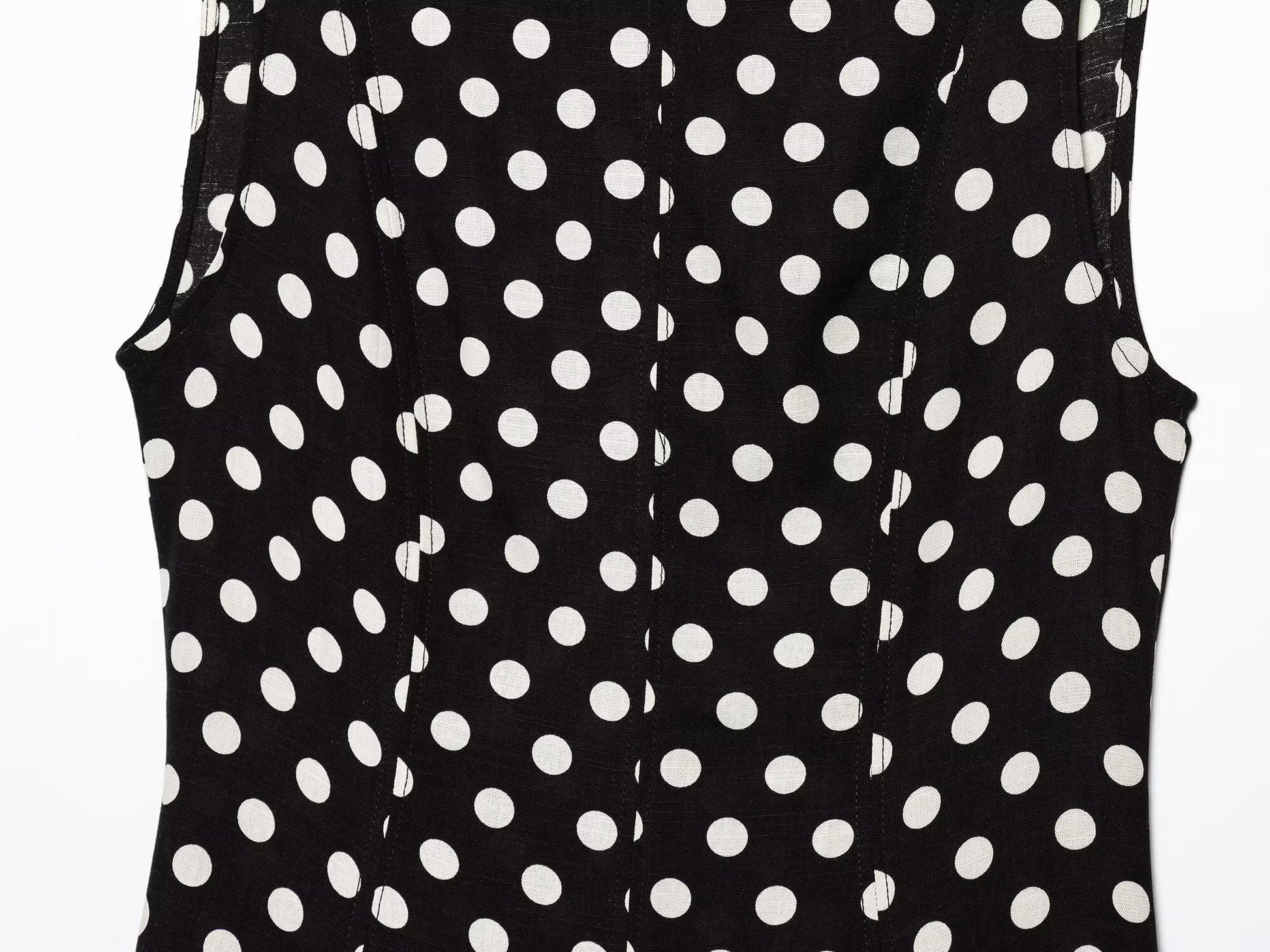 women's New Fashion sleeveless polka dot printed draped MIDI dress