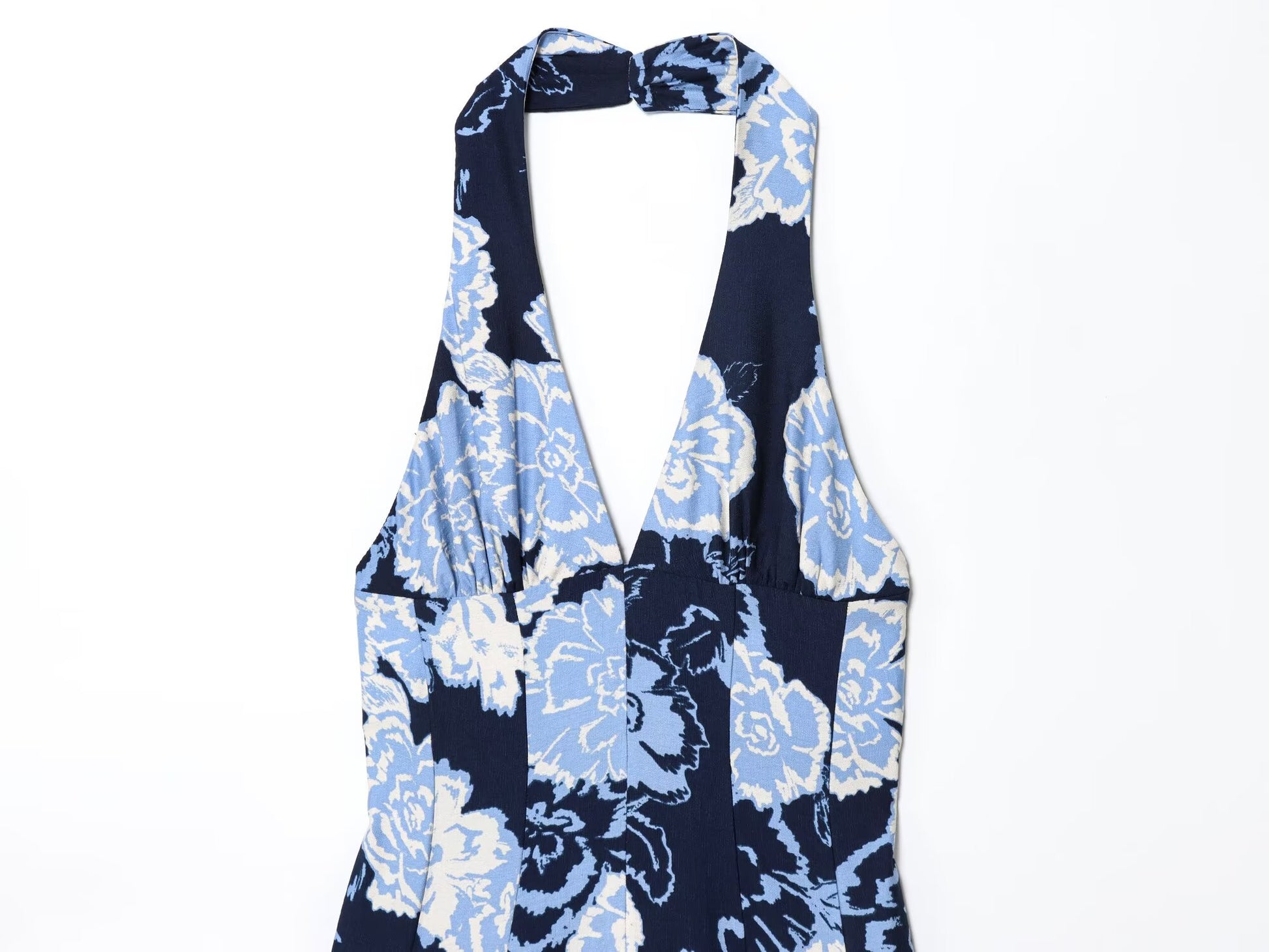 Women's New Fashion Sleeveless Printed Hanging Neck Midi Dress