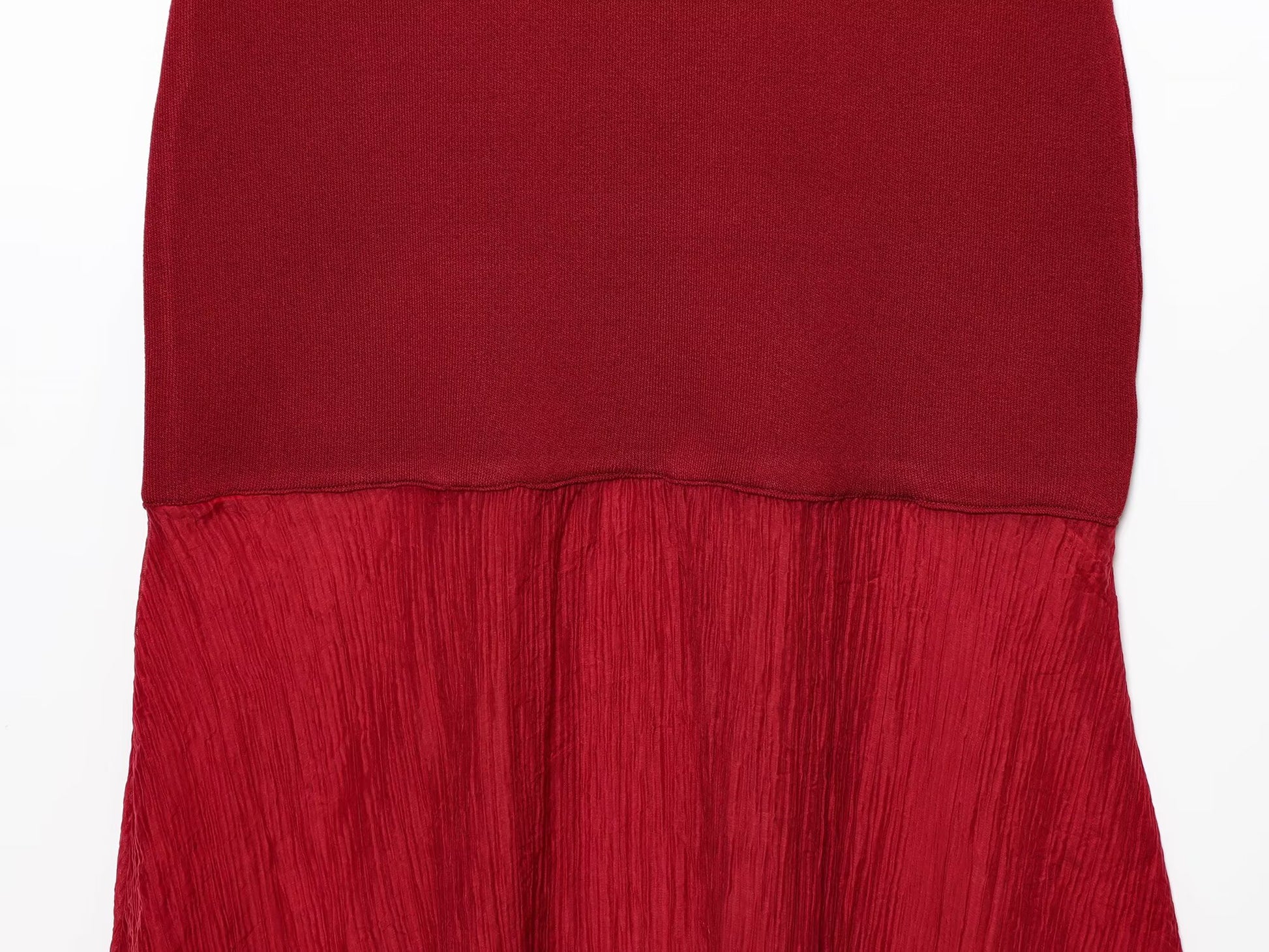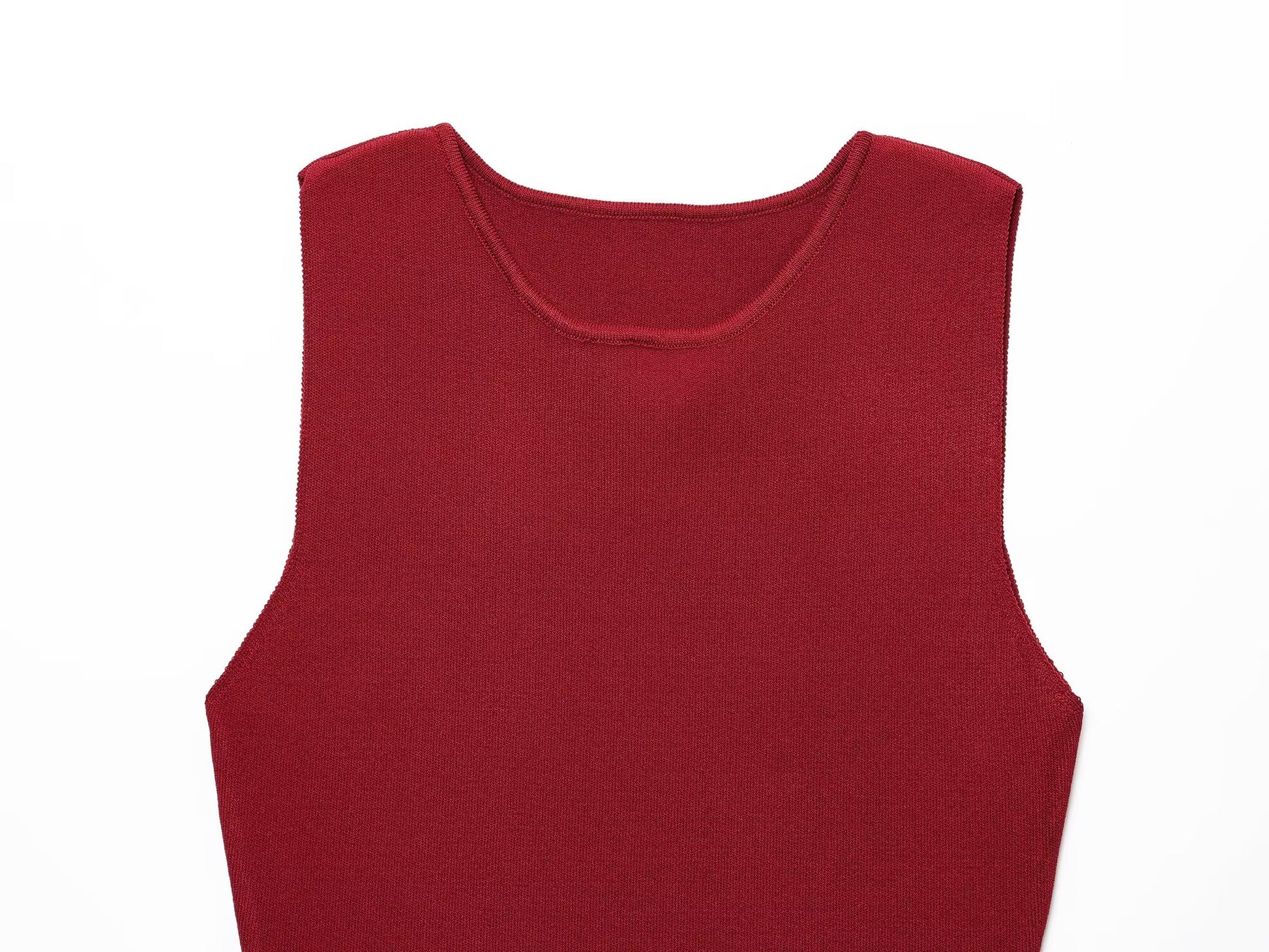 Women's New Fashion sleeveless Slim patchwork knitted MIDI dress