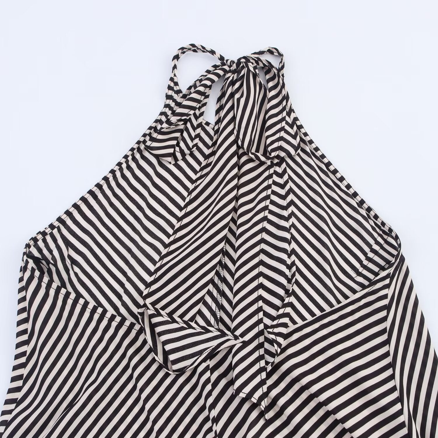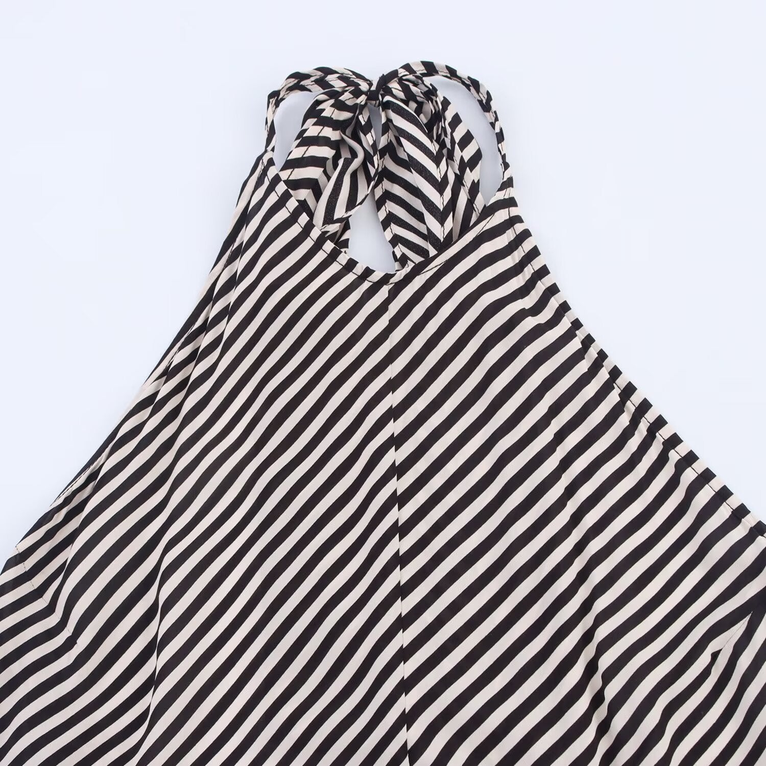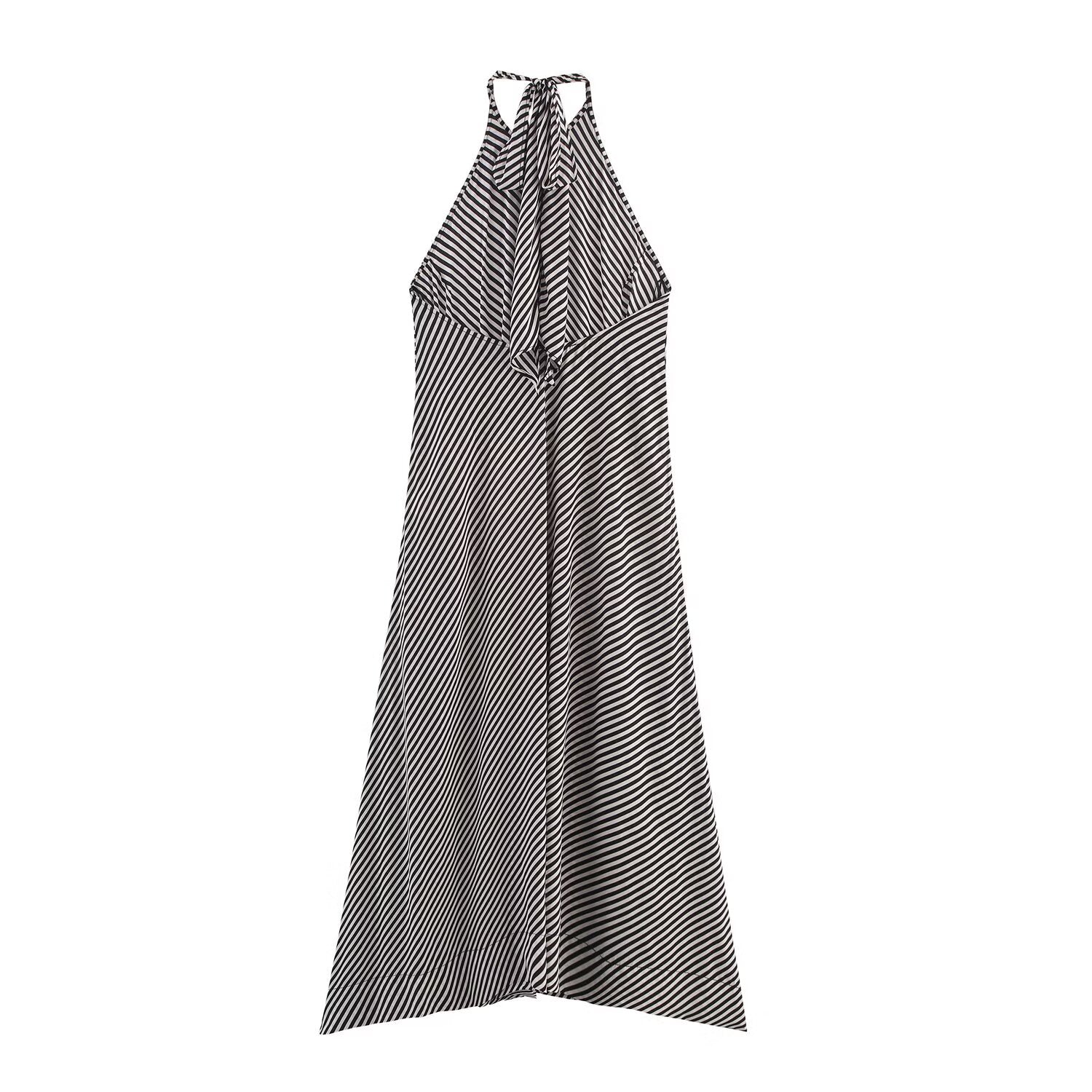 Women's New Fashion Sleeveless Striped Hanging Neck Midi Dress