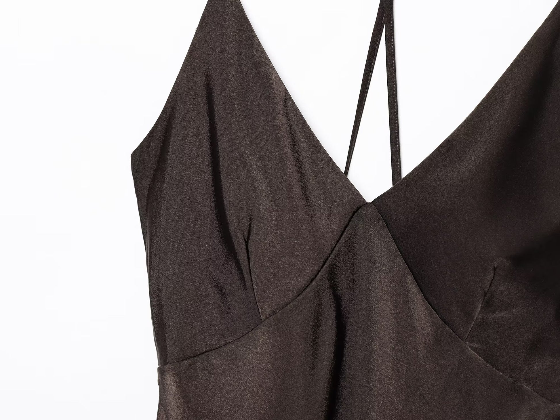 Women's new fashion slim backless lingerie style suspended Midi dress