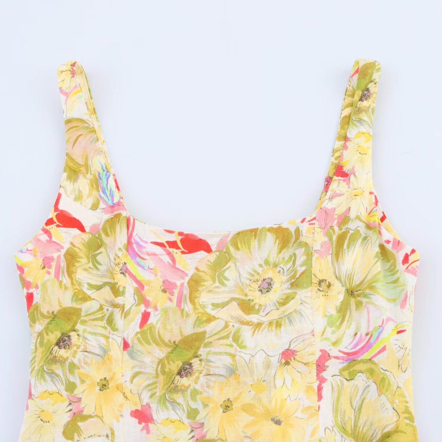 Women's' New Fashion slim backless Sleeveless printed linen blended MIDI dress