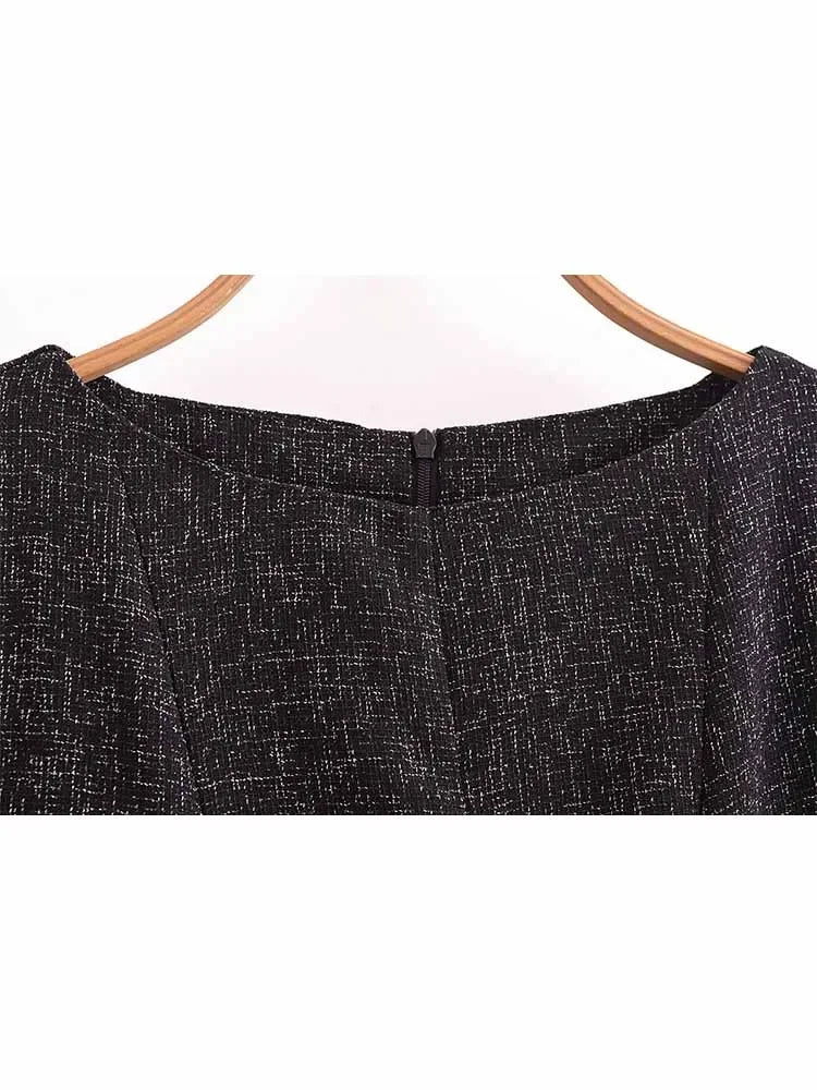 Women's new fashion slim versatile boat neck wide pleated MIDI dress retro short sleeved back zipper women's dress Mujer