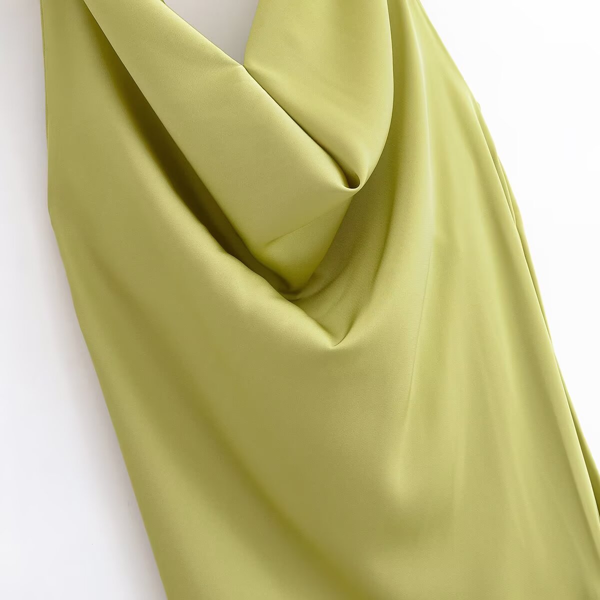 Women's New Fashion Solid Satin Texture Sleeveless draped Midi Dress