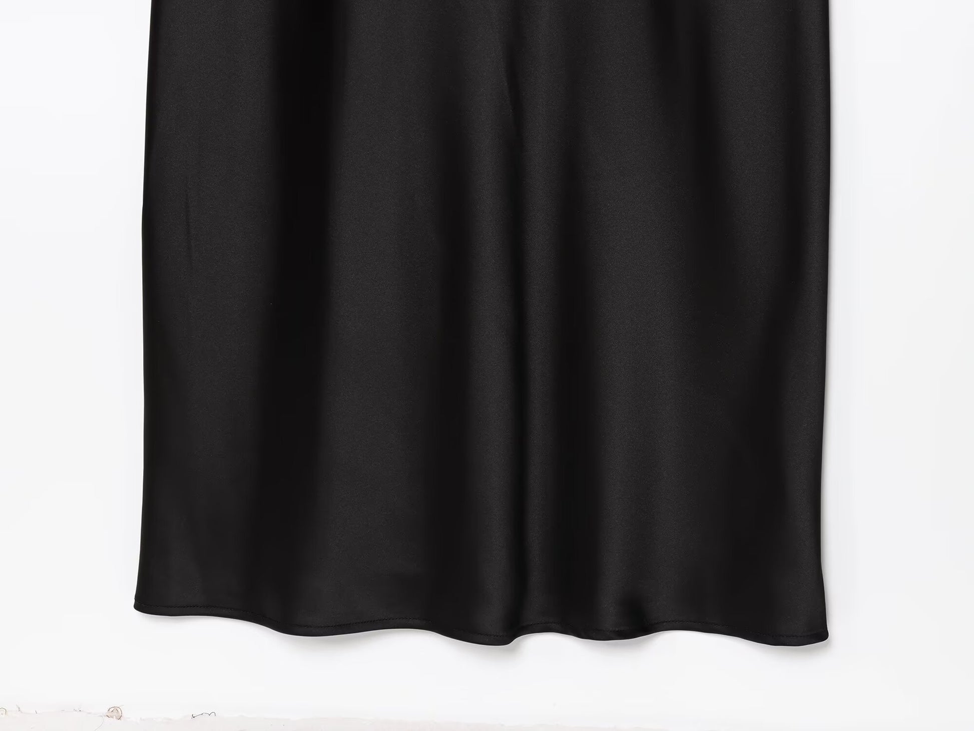 Women's New Fashion Solid Underwear Style Satin Texture suspender Midi Dress