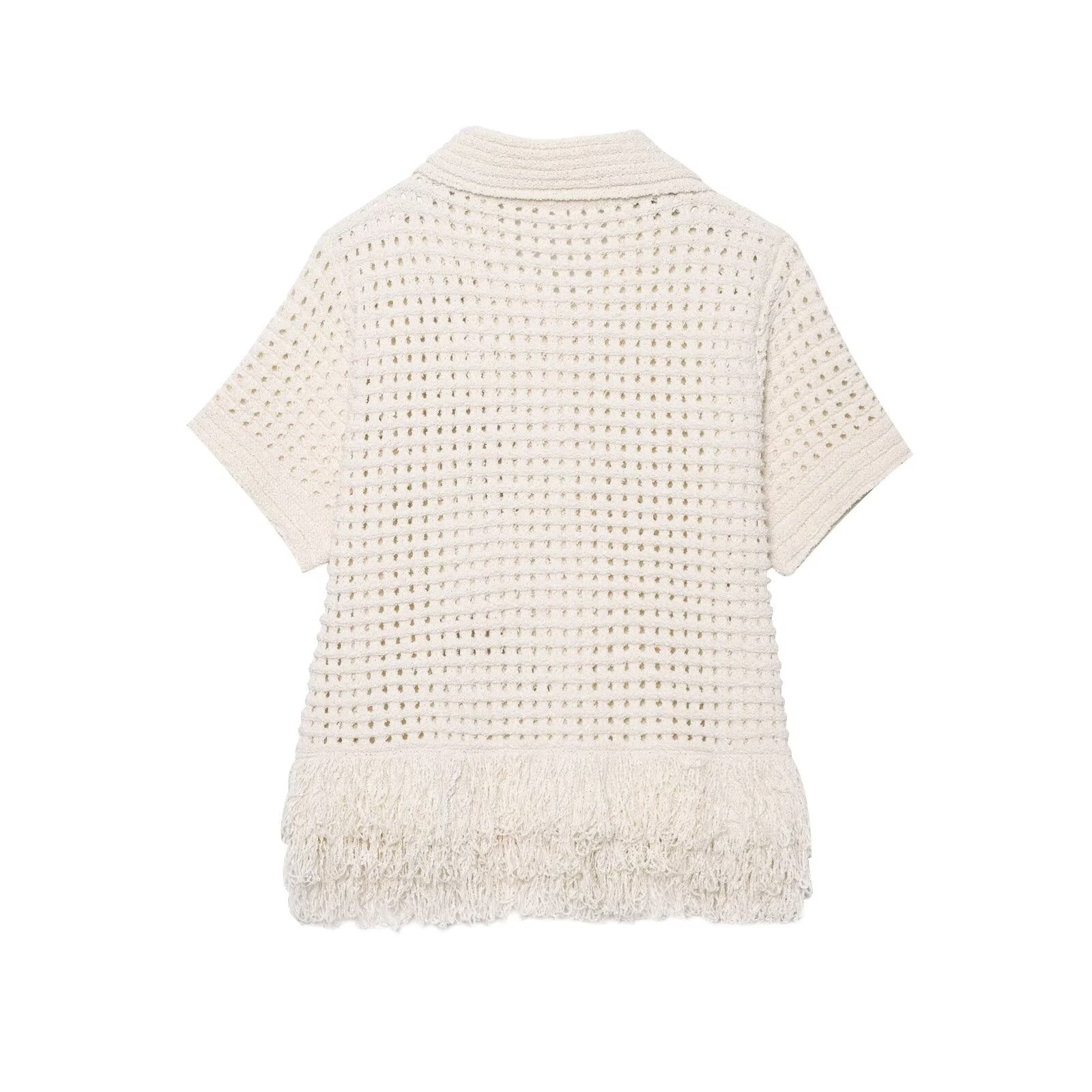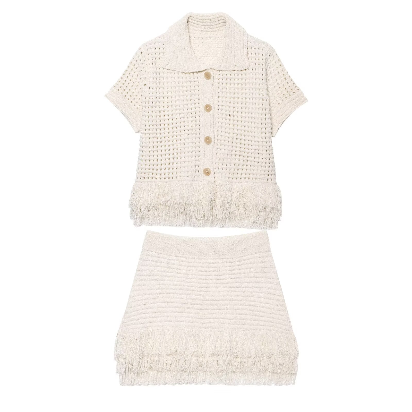 Women's new fashion tassel decoration short sleeved plaid knit coat+Skirts Women's suit