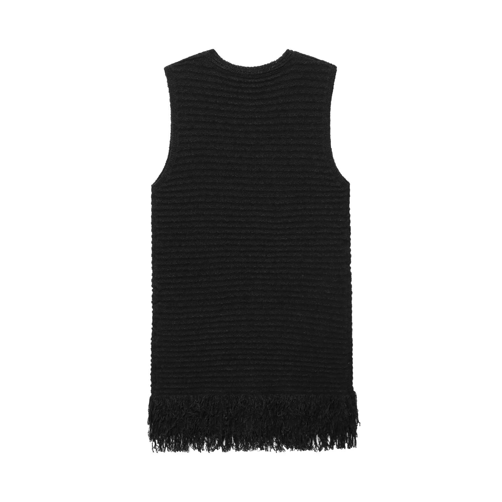 Women's New Fashion tassel decoration sleeveless plaid knitted mini dress