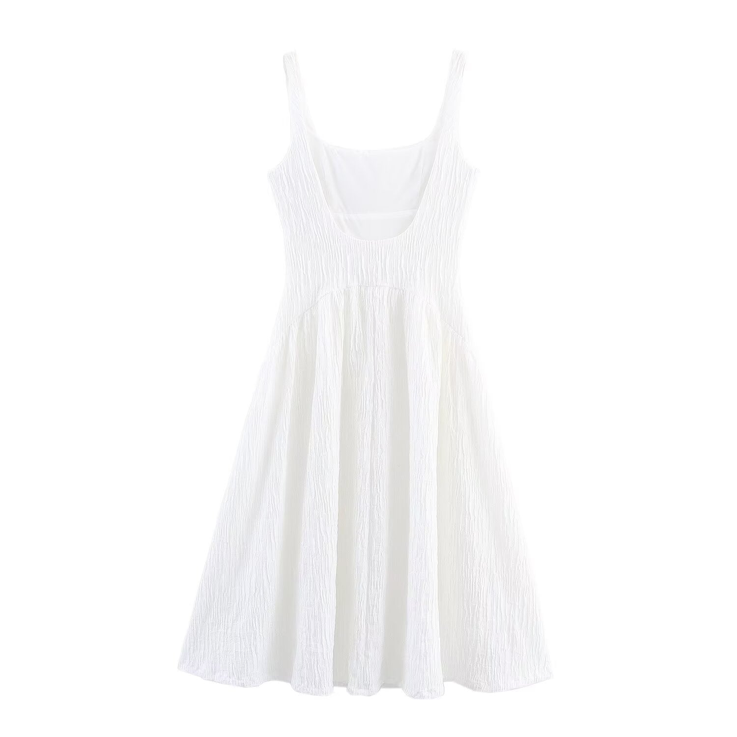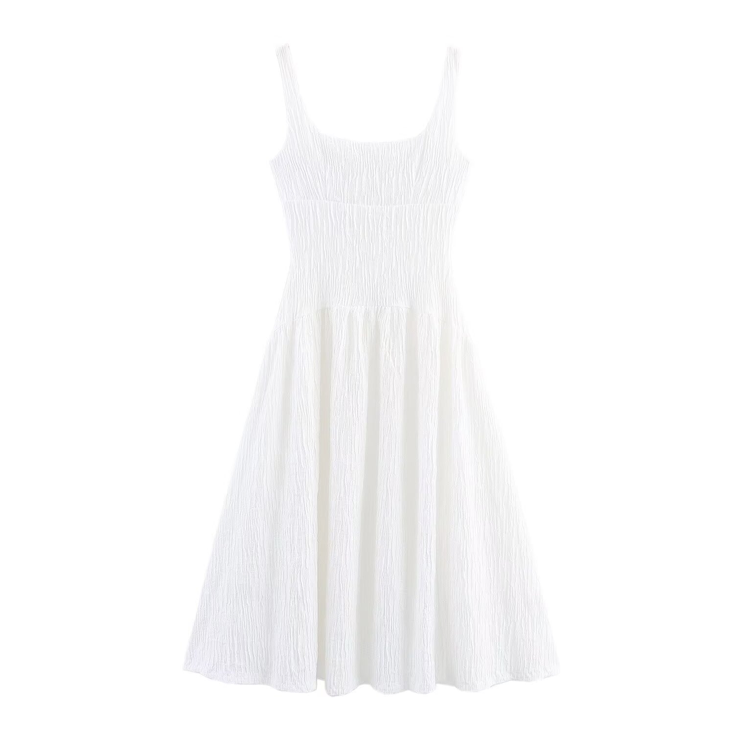 Women's new fashion texture sleeveless wide shoulder strap MIDI dress