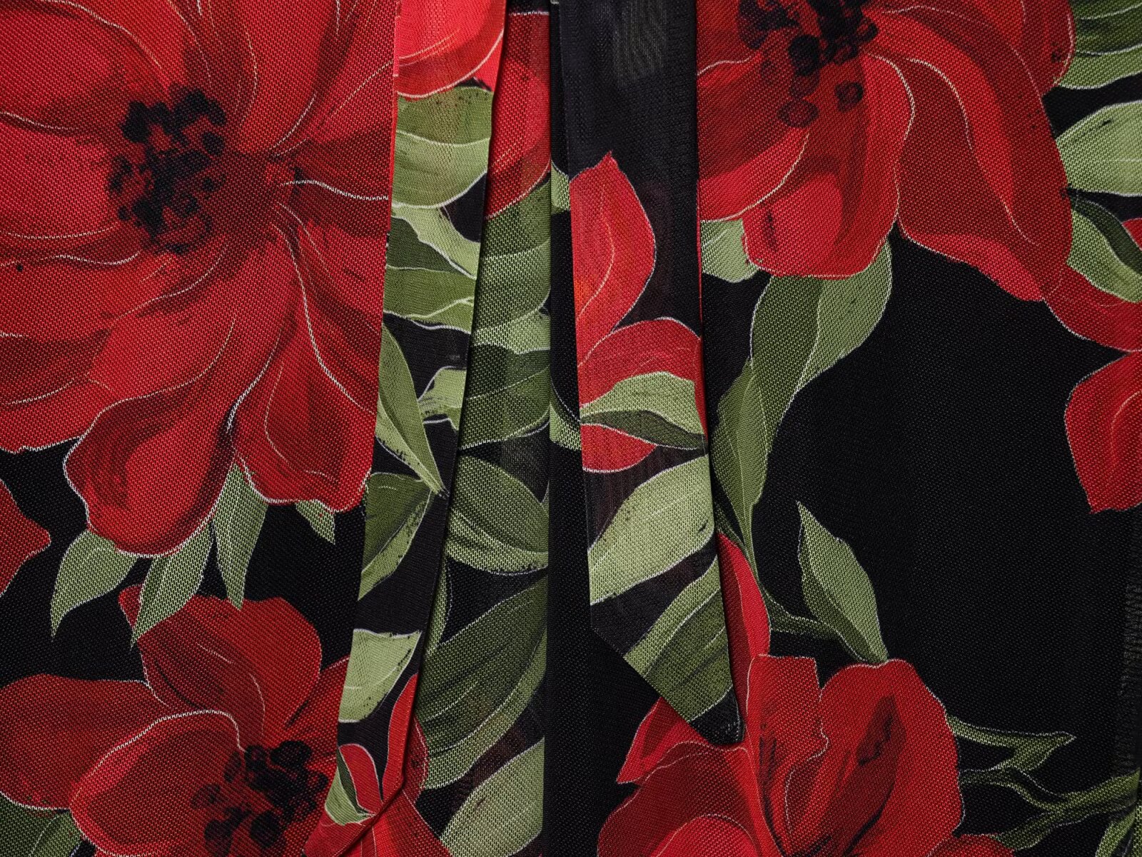 Women's New Fashion Tight Backless tulle Printed Hanging Neck Midi Dress