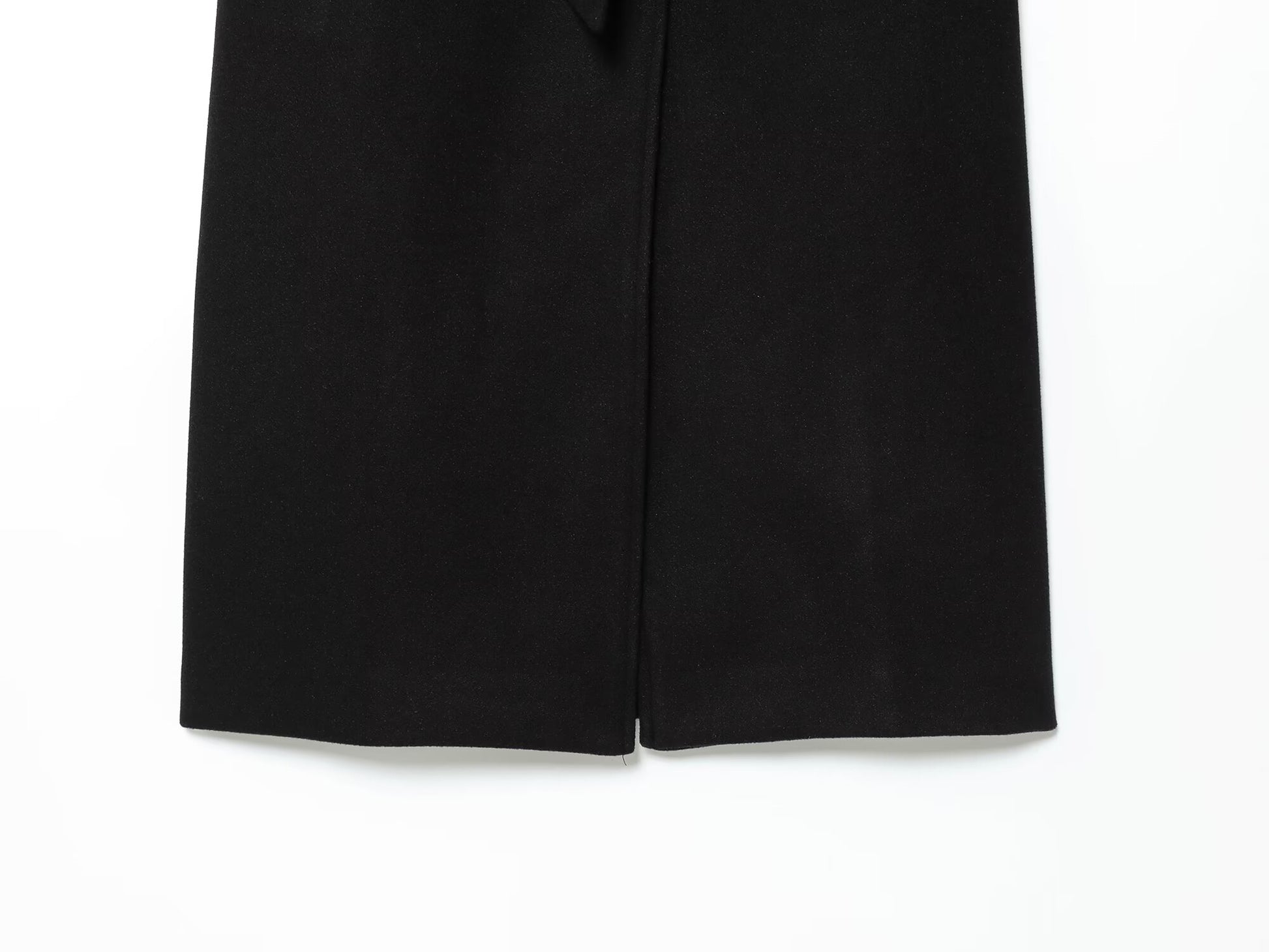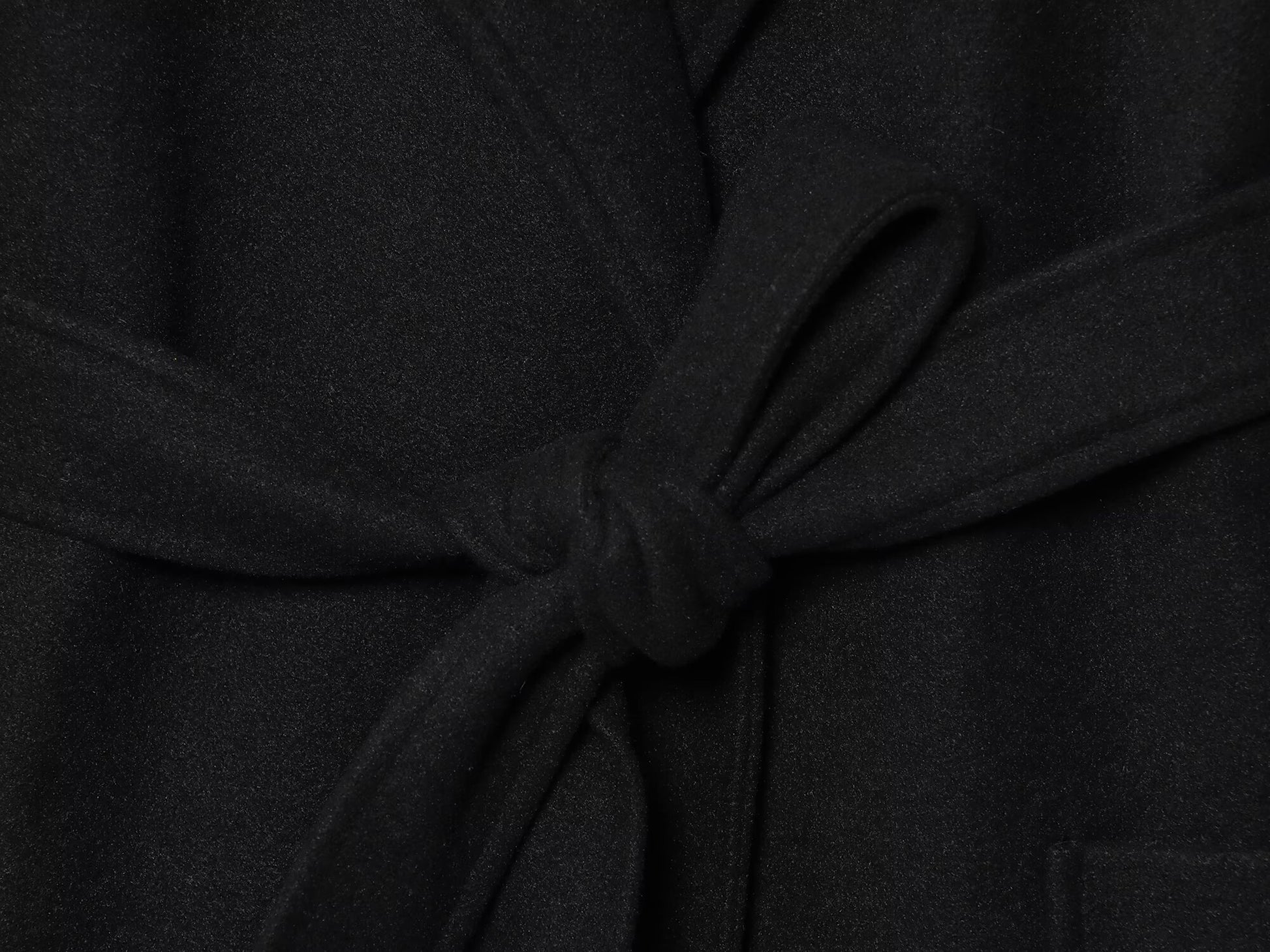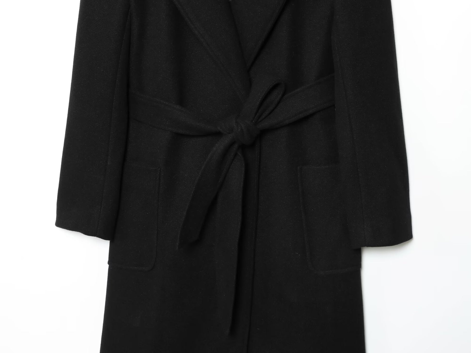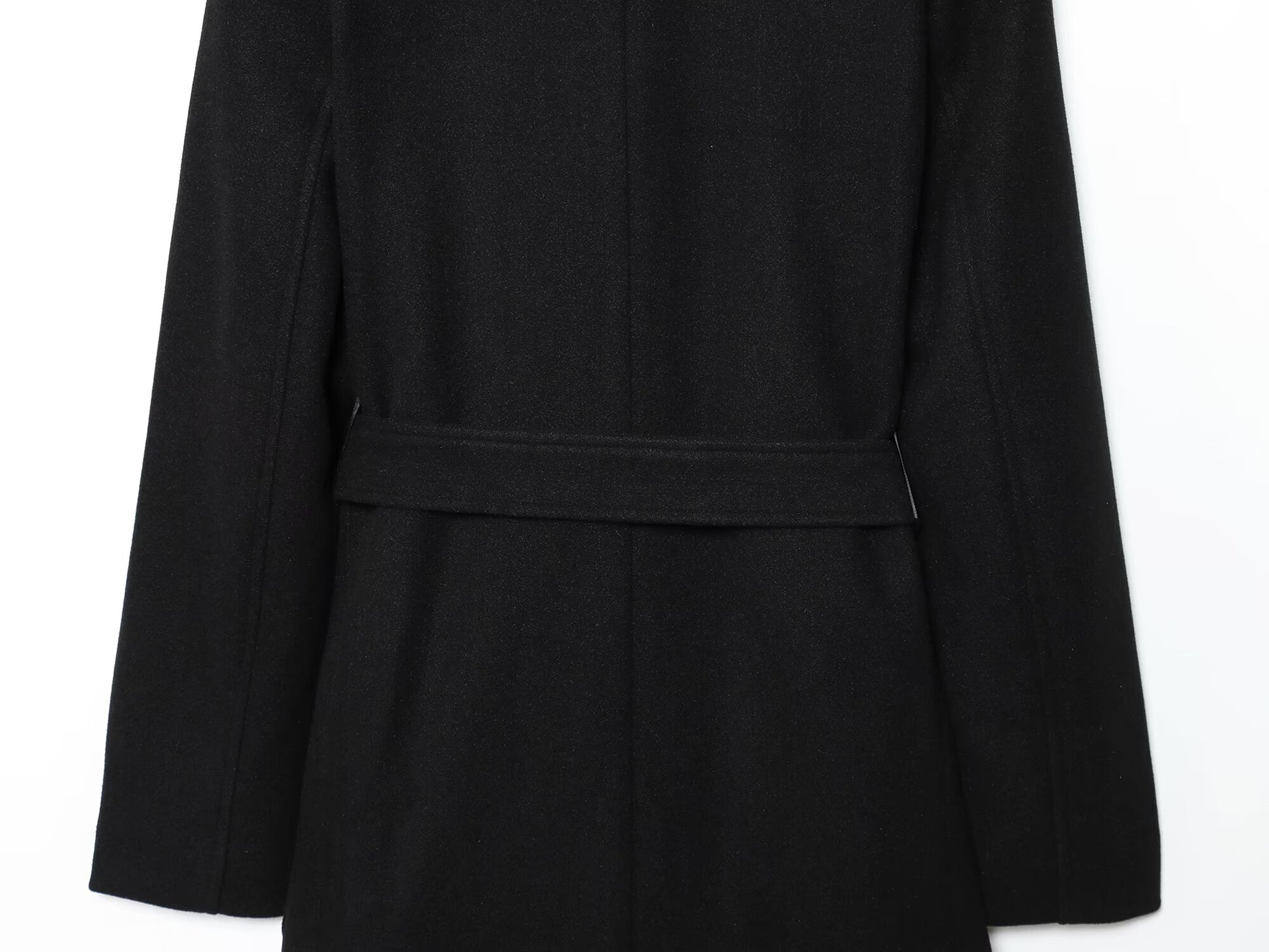 Women's New Fashion With Belt Black Long Style Wool Blended Woolen Coat