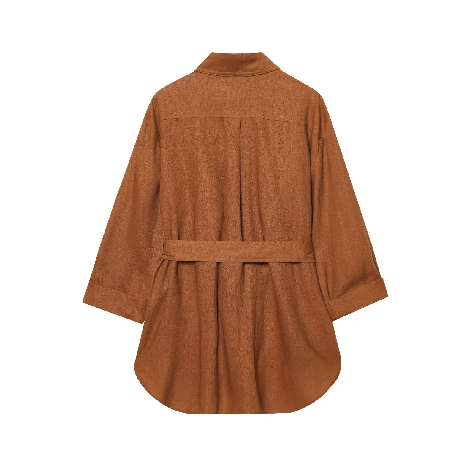 Women's new fashion with belt casual linen blend button up shirt+Pants Women's suit