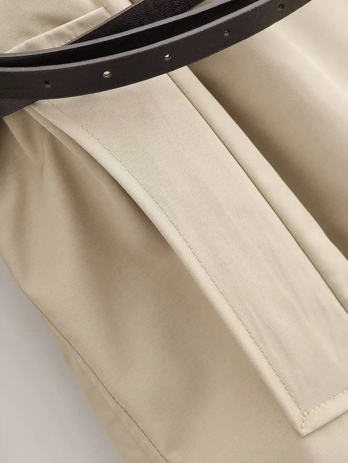 Women's new fashion with belt loose double breasted long style windbreaker coat retro long sleeved pocket women's coat chic top