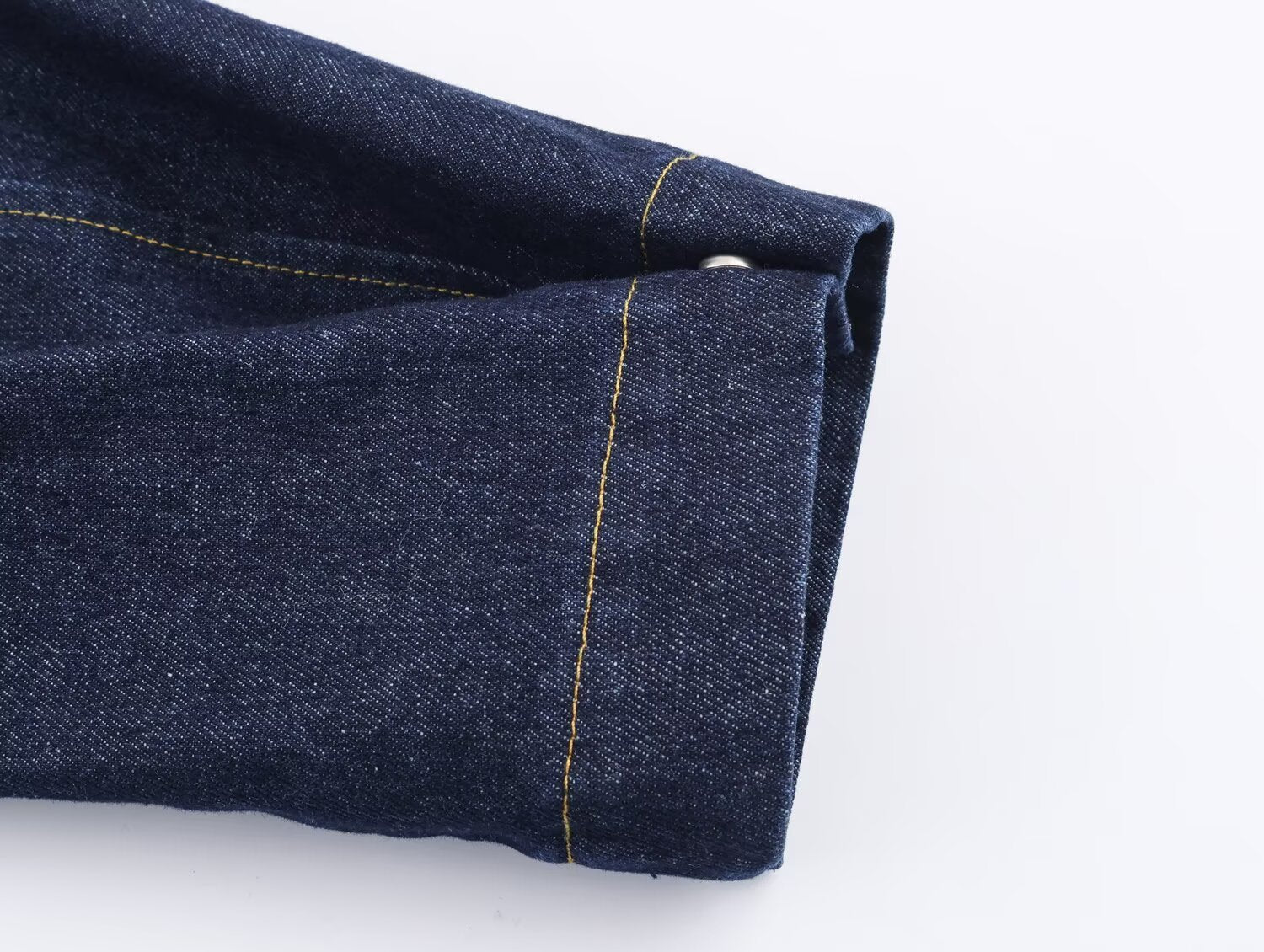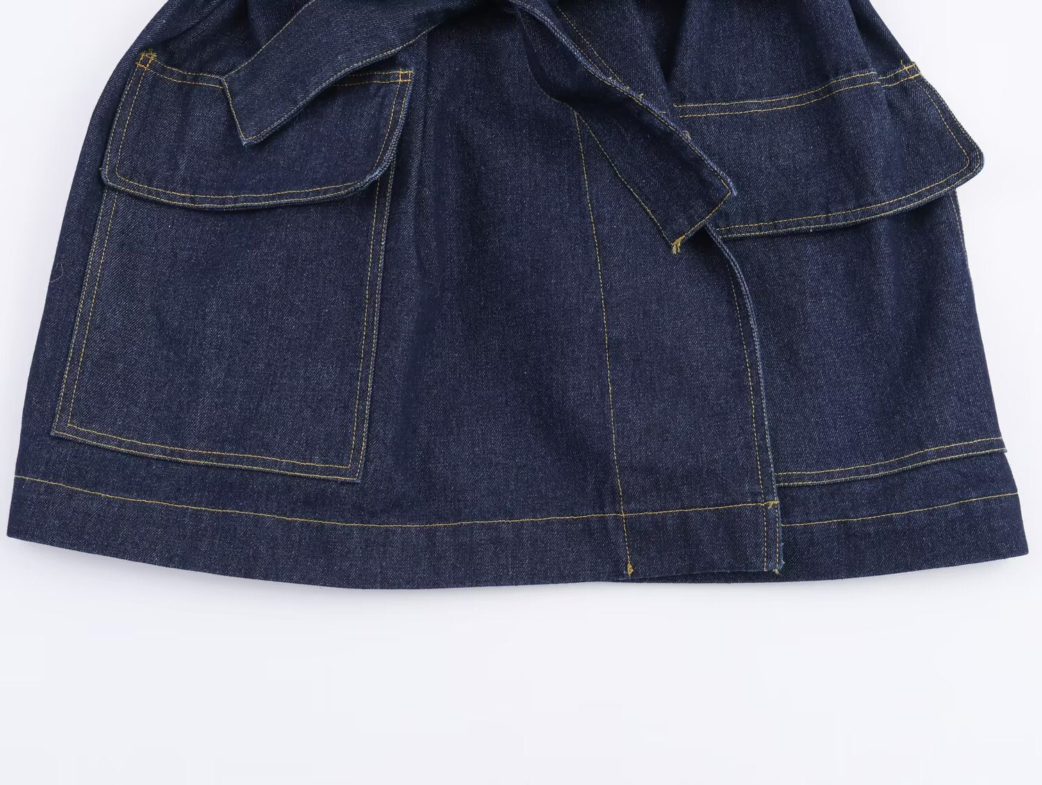 Women's new fashion with Belt loose short denim windbreaker Coat