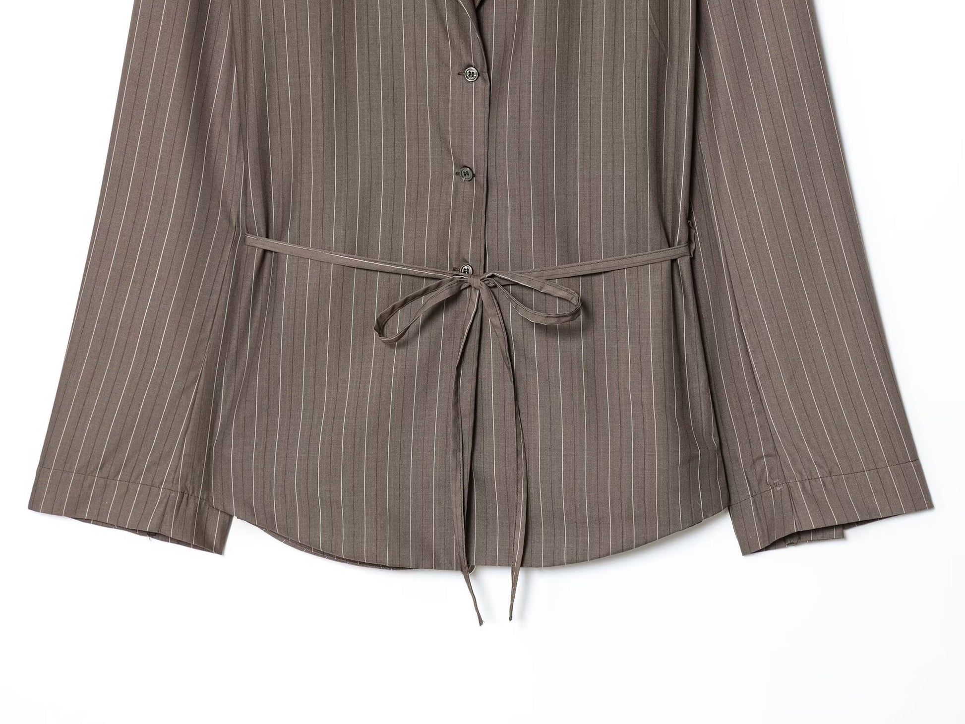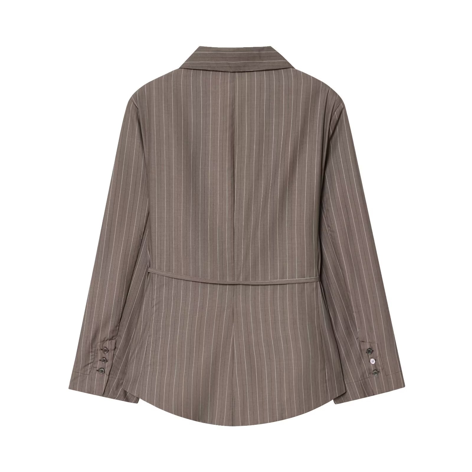 Women's New Fashion With Belt Loose Shoulder Pads Striped Suit Coat+Pants Suit