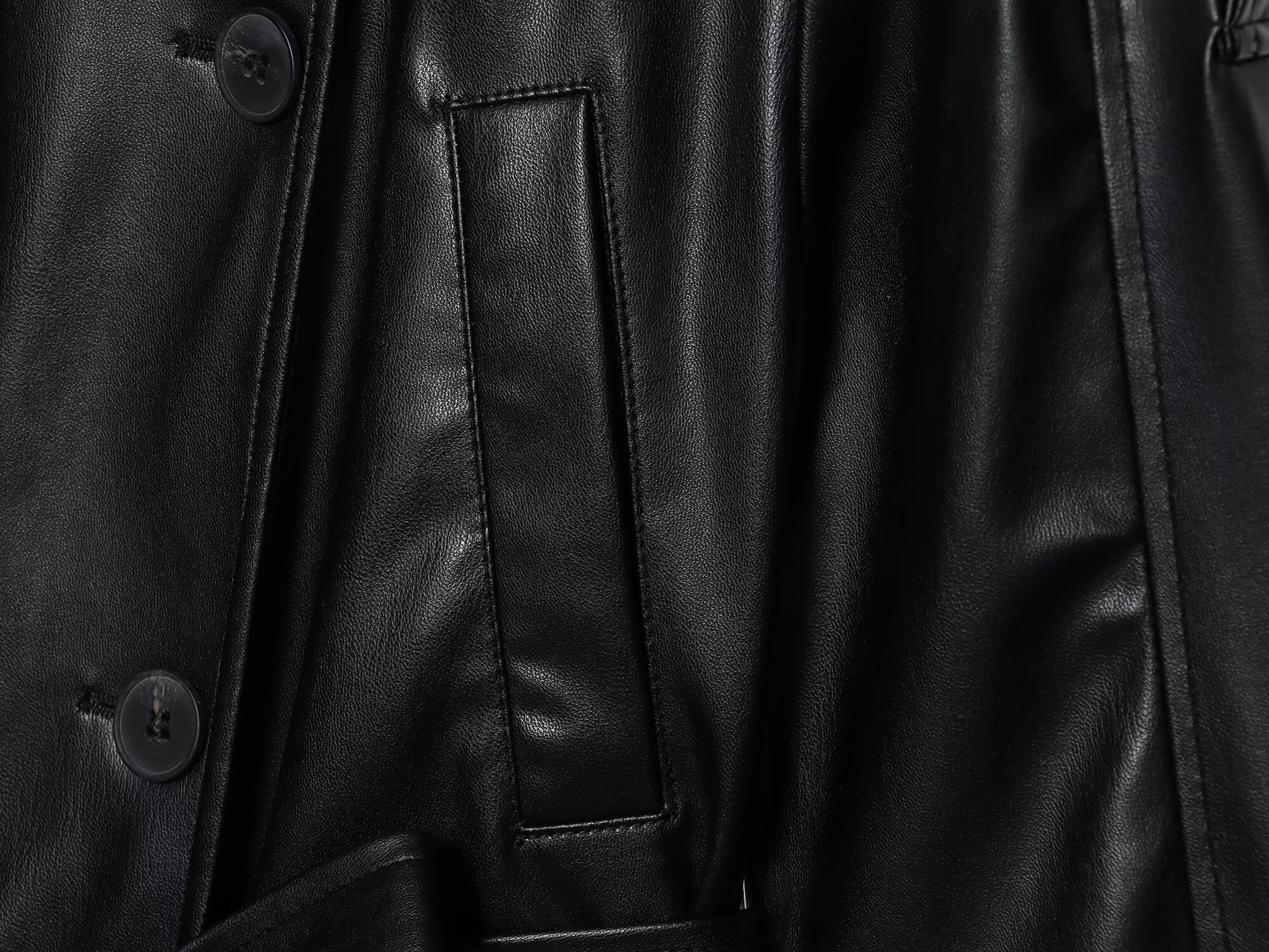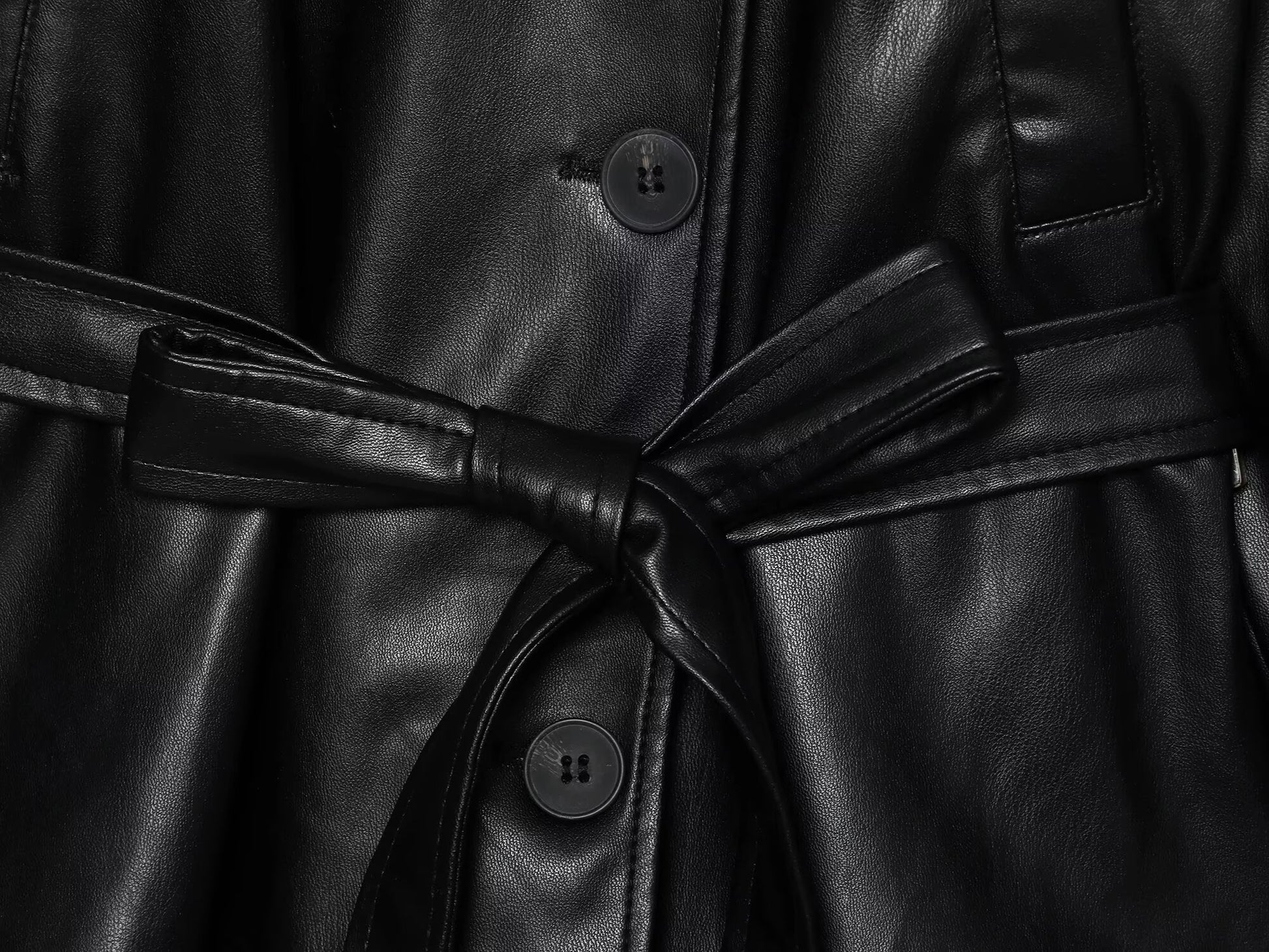 Women's new fashion with Belt short Faux Leather windbreaker Coat
