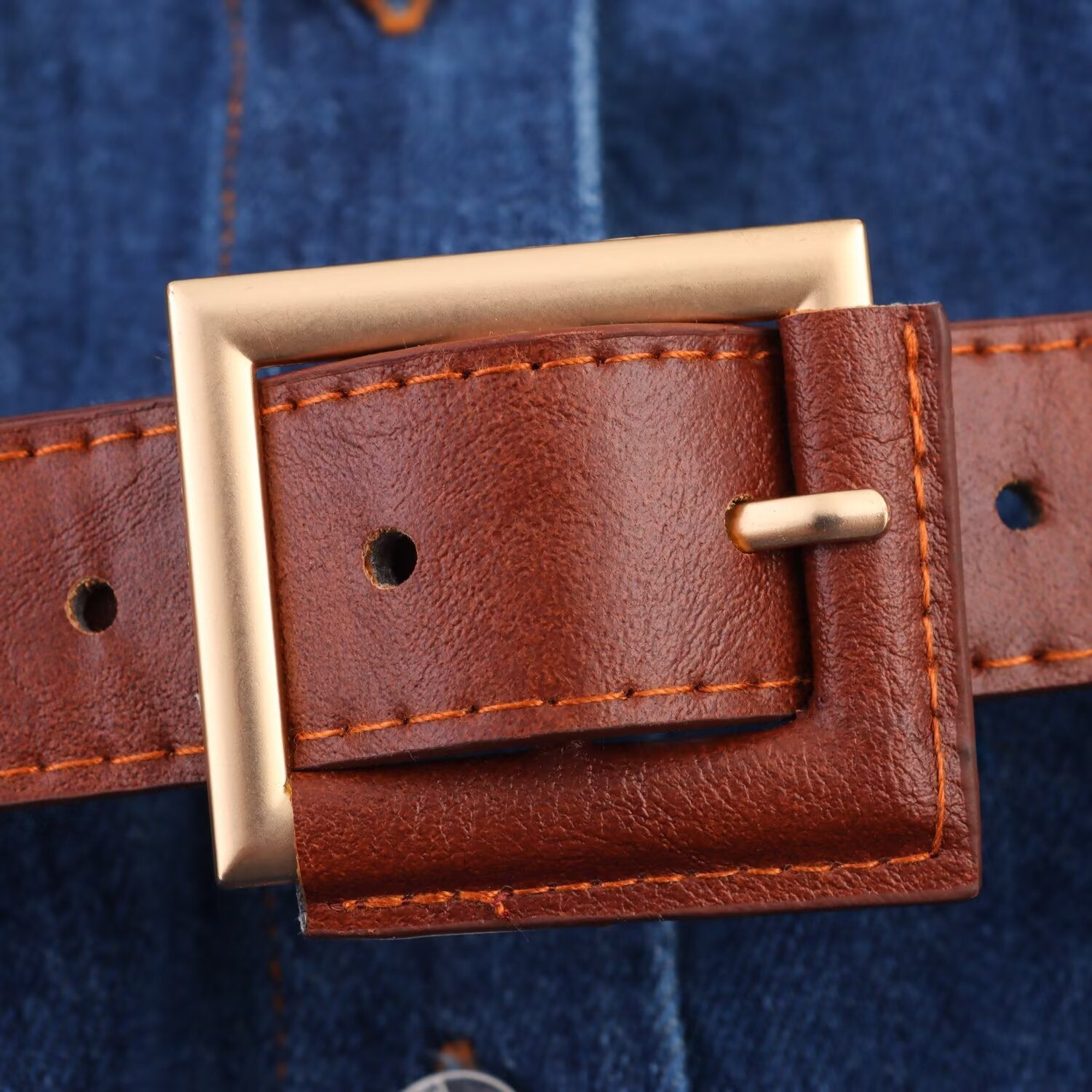 women's New Fashion with Belt short sleeved denim MIDI dress