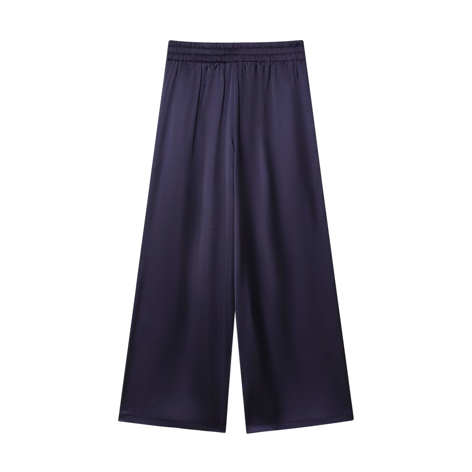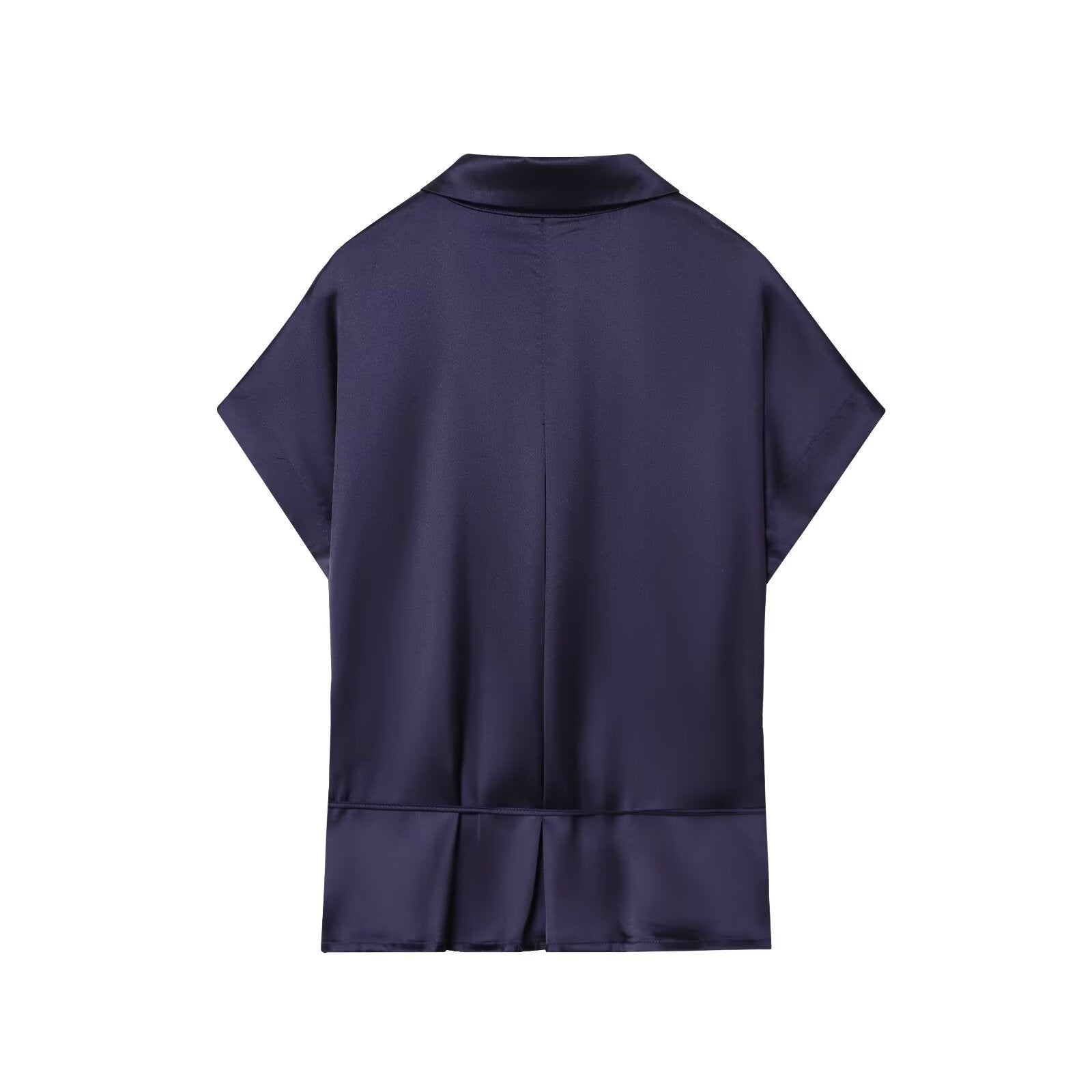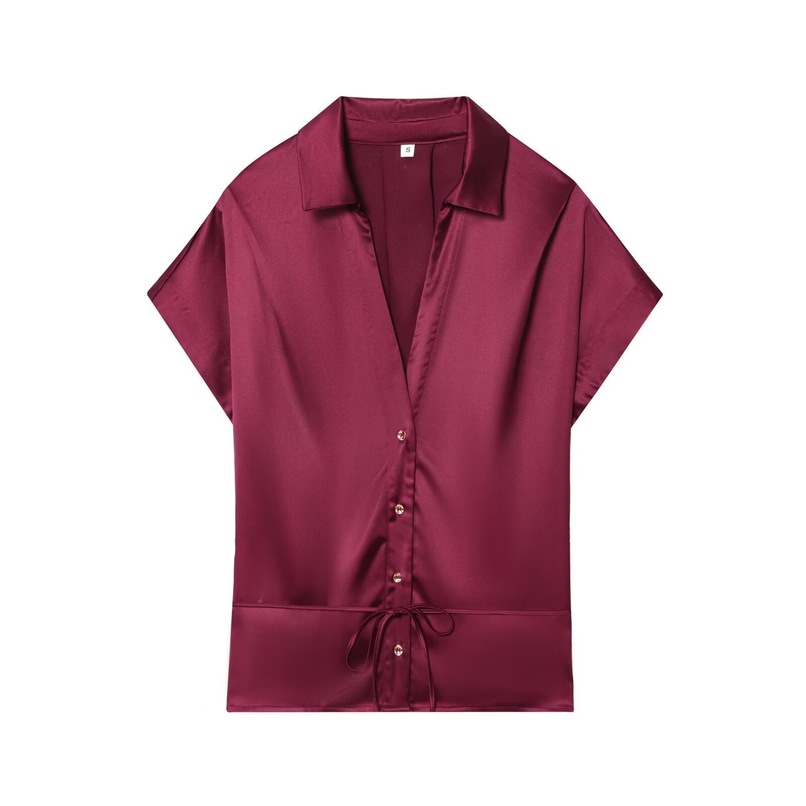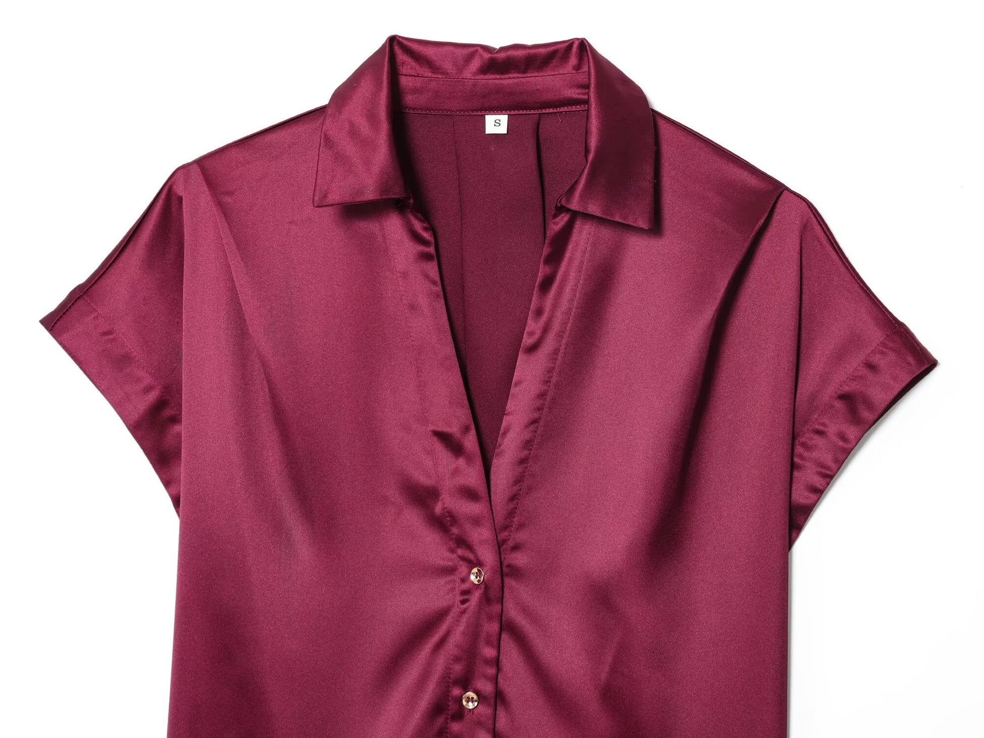 Women's new fashion with Belt short sleeved satin textured shirt+Pants suit
