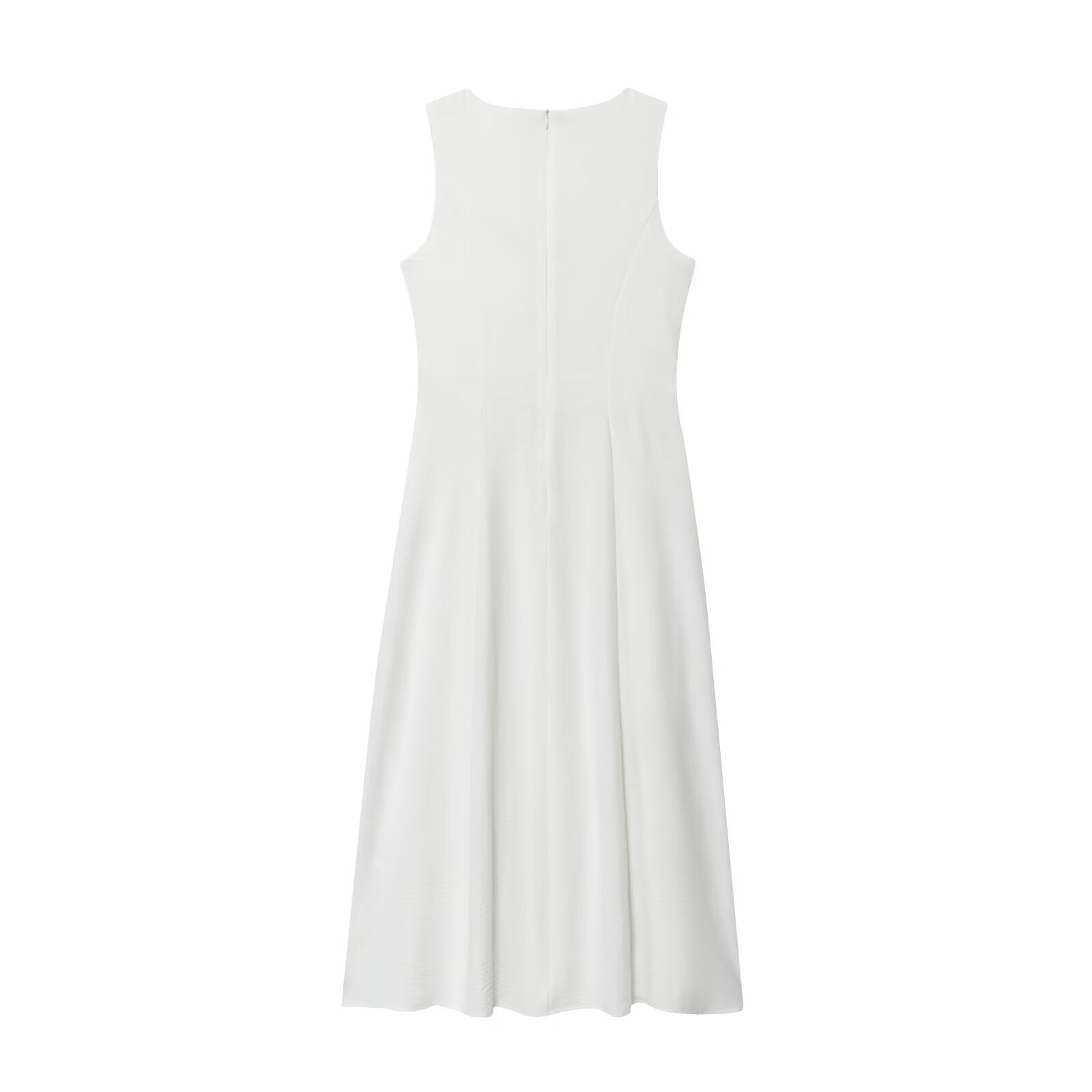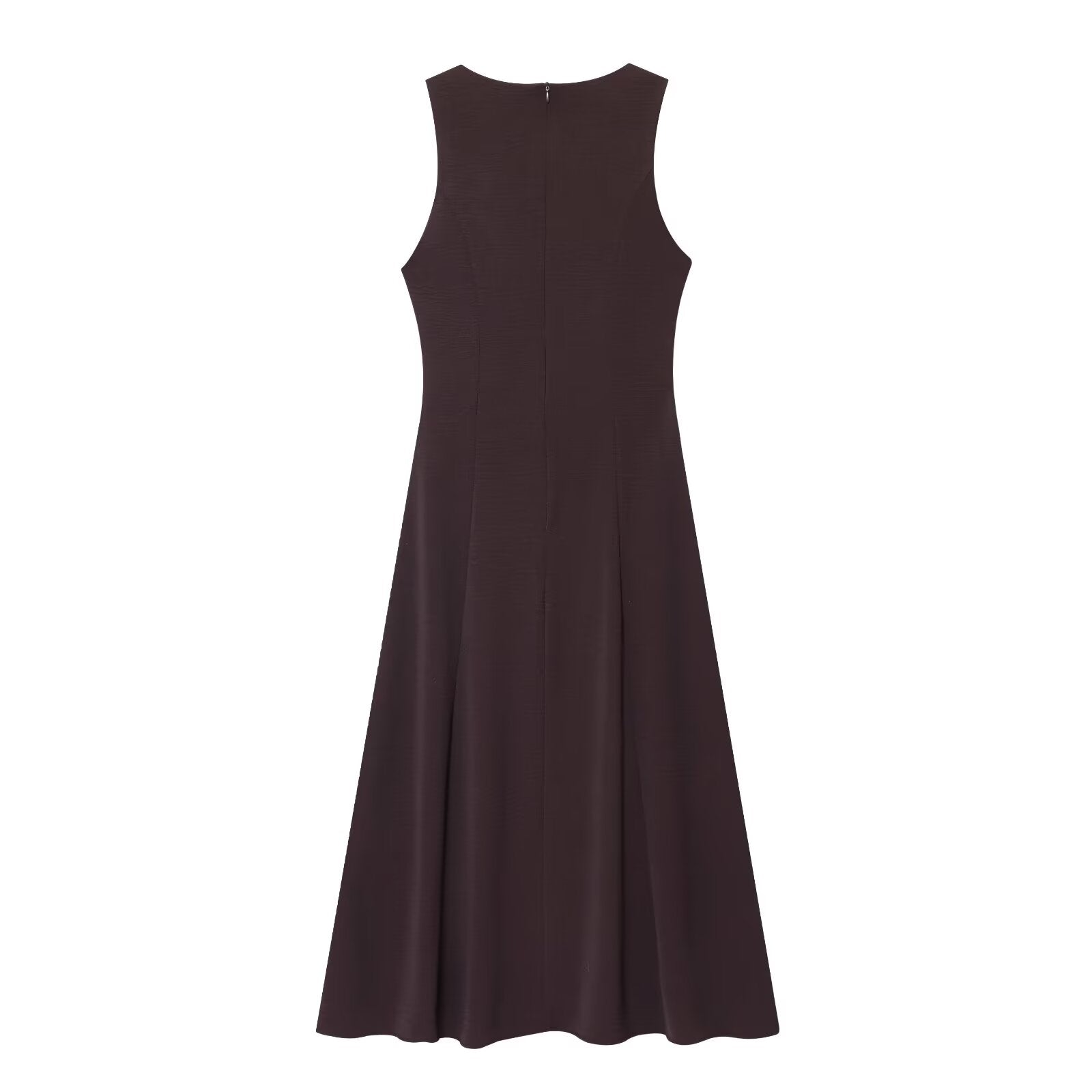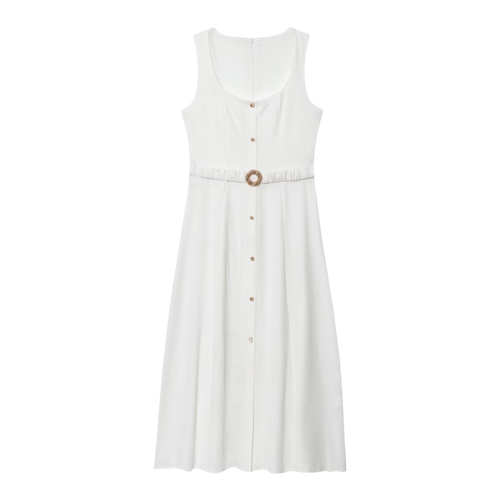 Women's New Fashion With Belt Sleeveless Square Neck Midi Dress