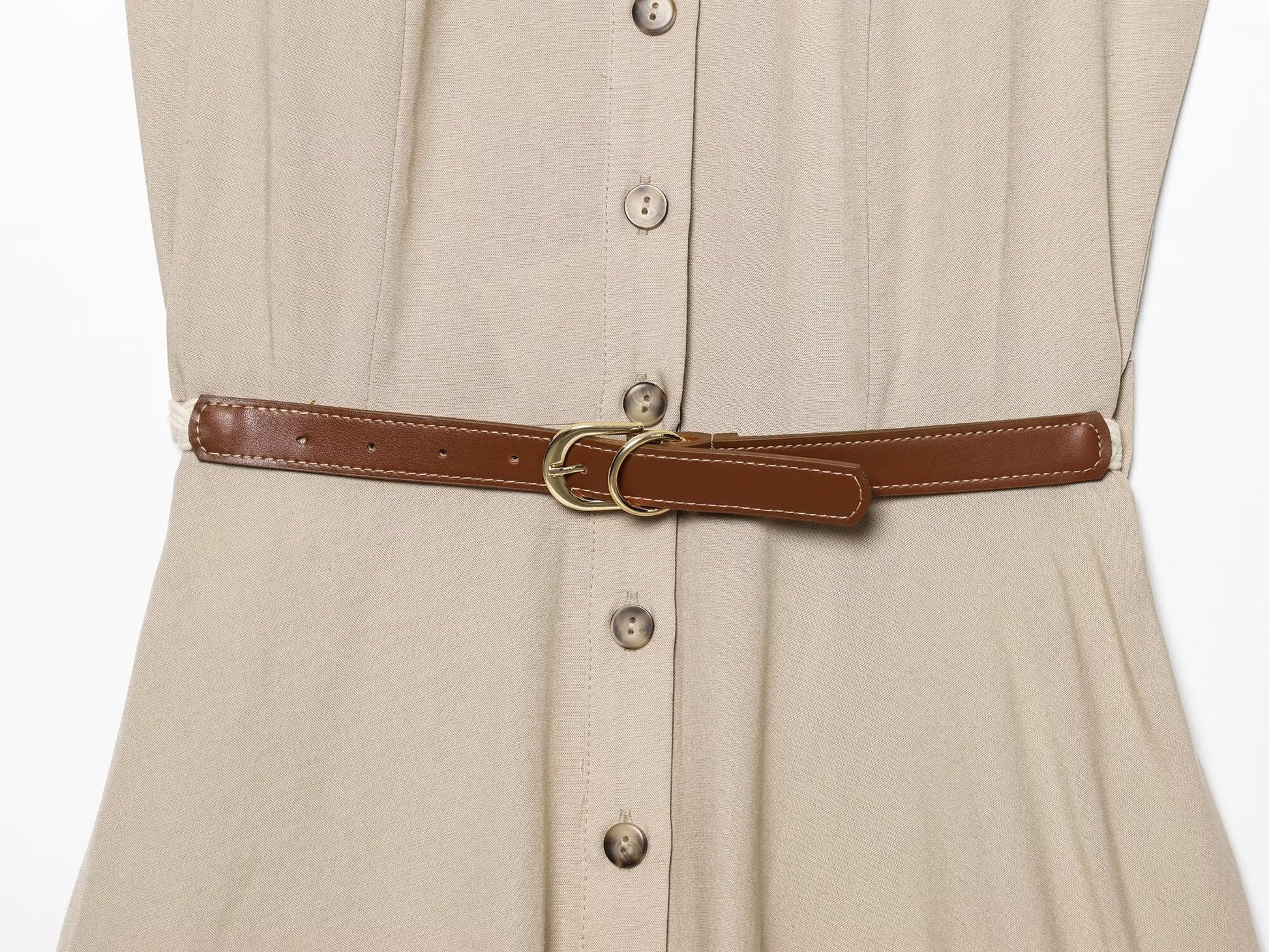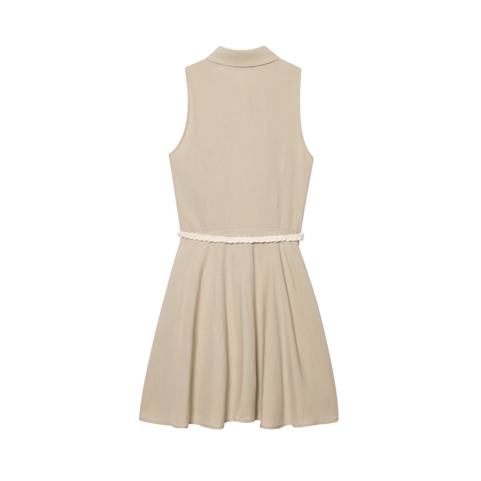 Women's new fashion with belt slim single breasted sleeveless shirt style mini dress