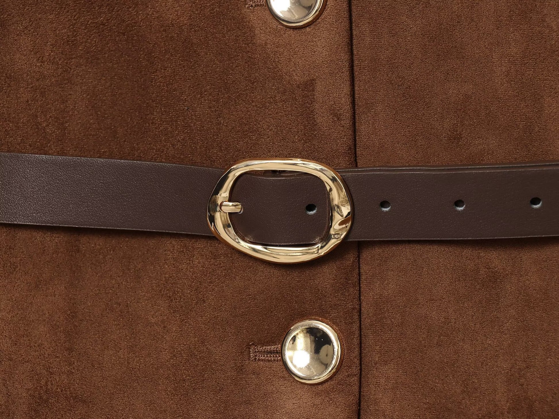 Women's new fashion with Belt suede texture effect O Neck suit jacket