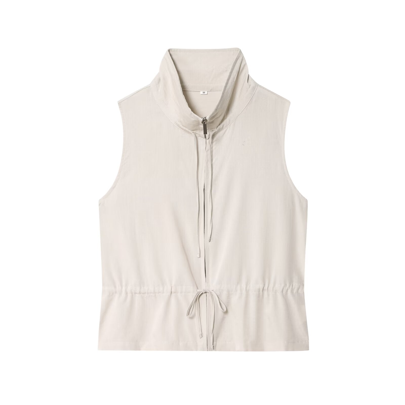 Women's new fashion with drawstring sleeveless stand collar vest+Pants suit