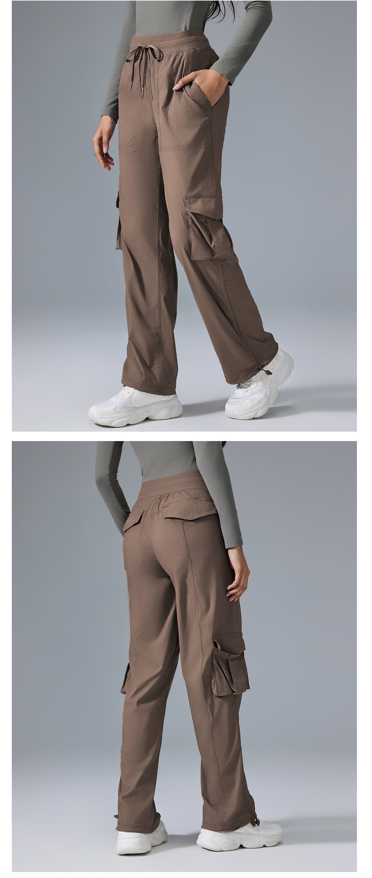 Women's new Joker running lightweight quick-drying multi-pocket wide-leg overalls