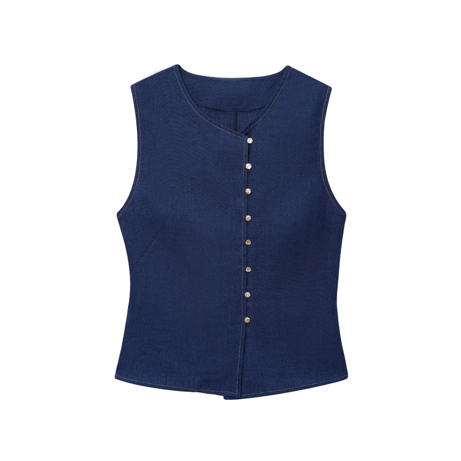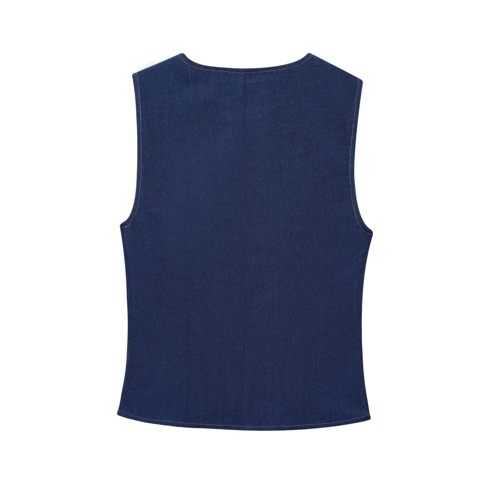Women's suit 2 pieces 2025 fashion linen double-breasted vest+pants women's suit