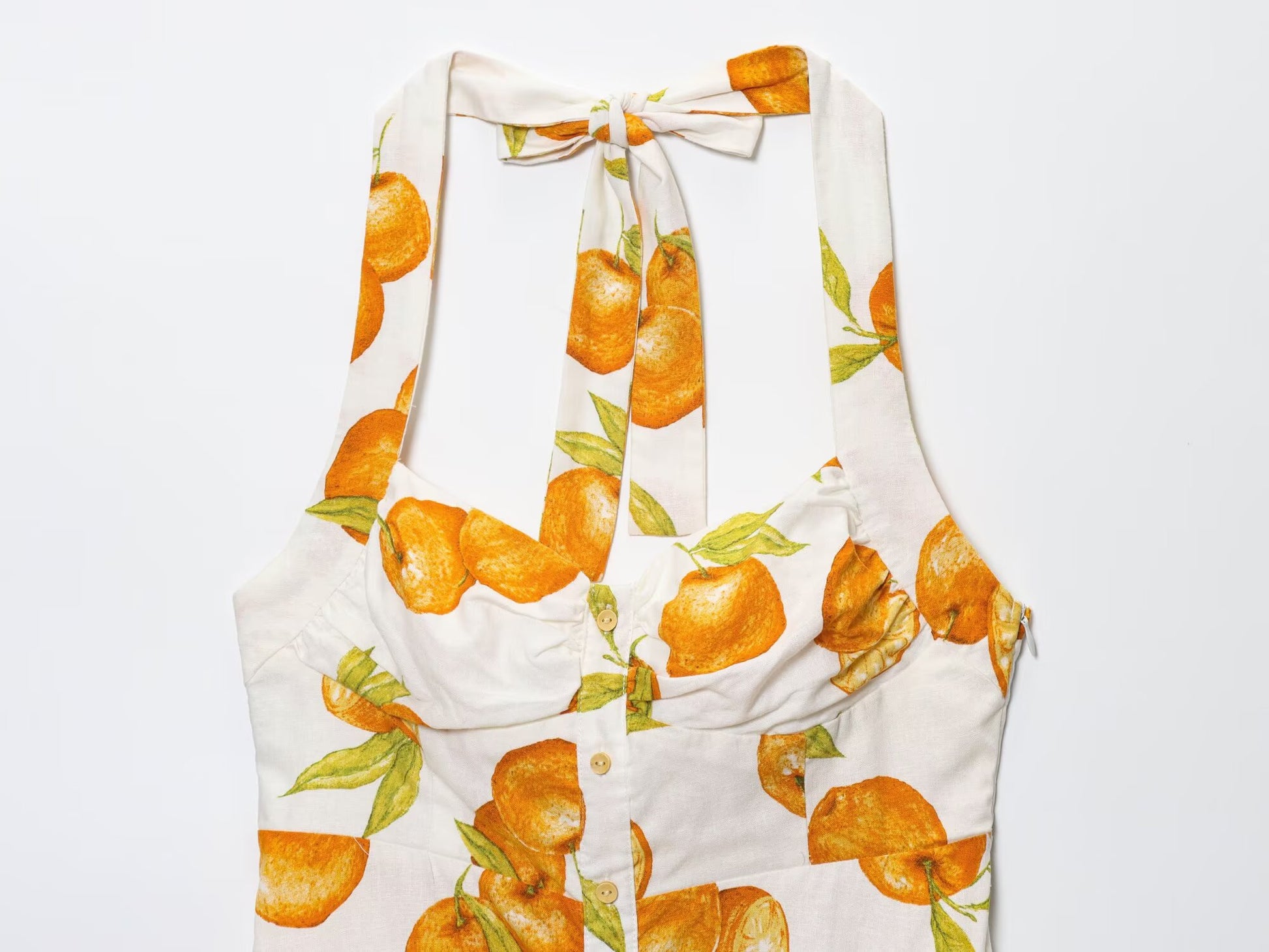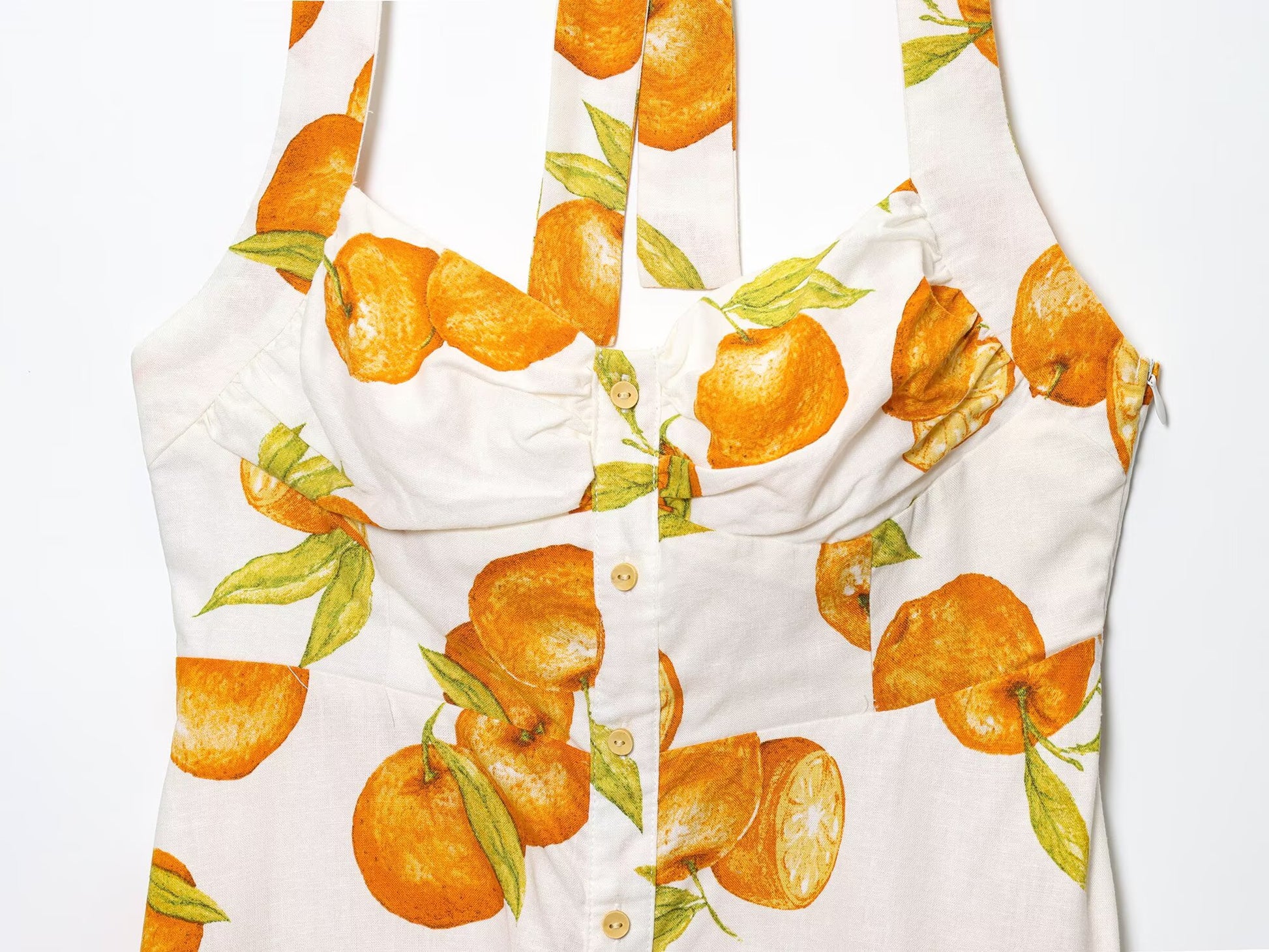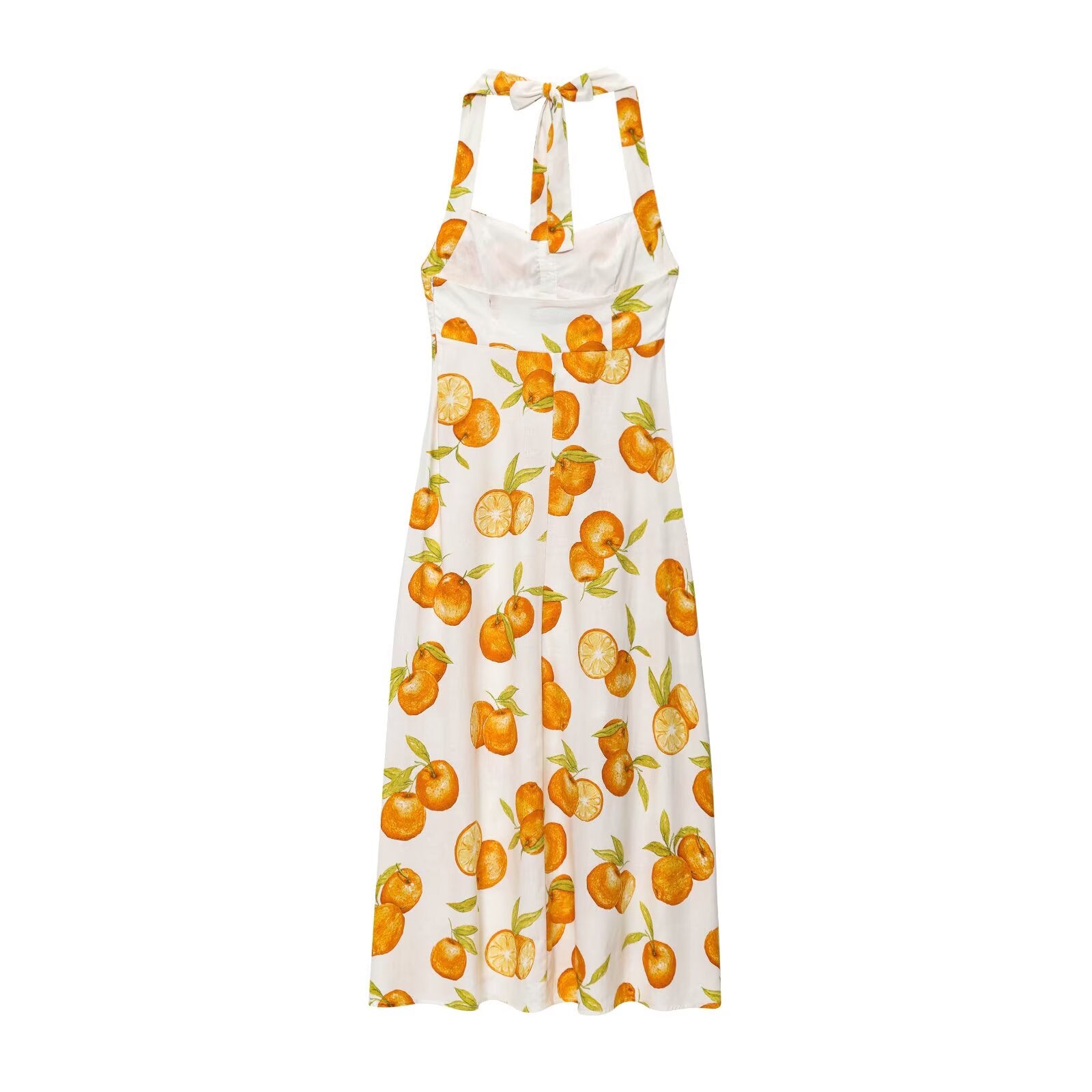 Women's Sweet Fashion Comfortable Printed Hanging Collar Midi Dress