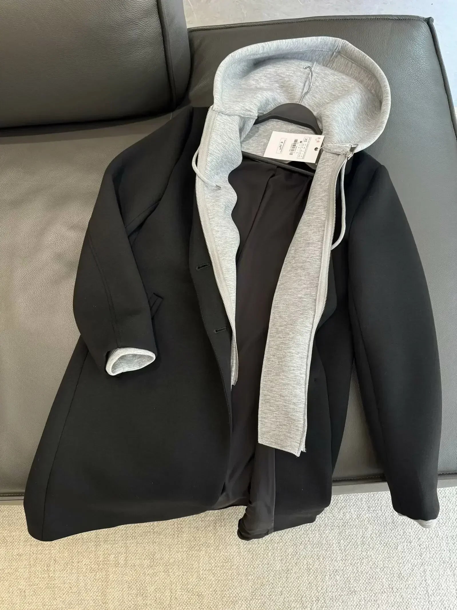 Women's winter new Fashion detachable hooded design loose single breasted patchwork coat retro long sleeved Female coat chic top