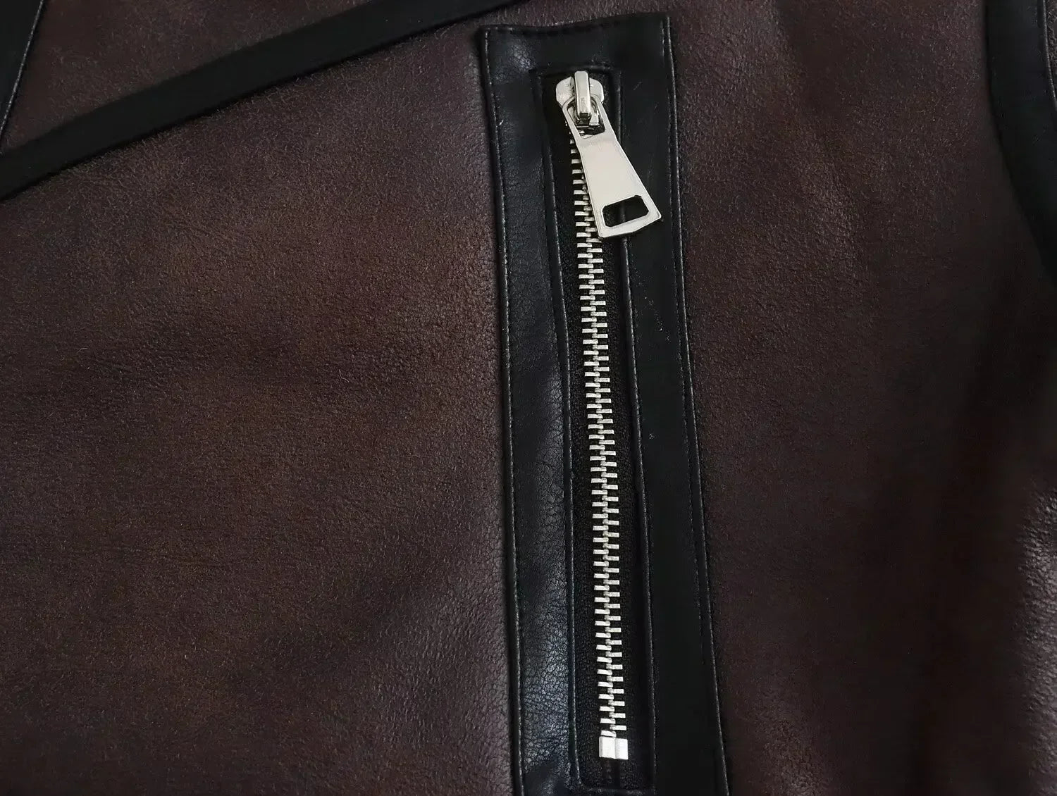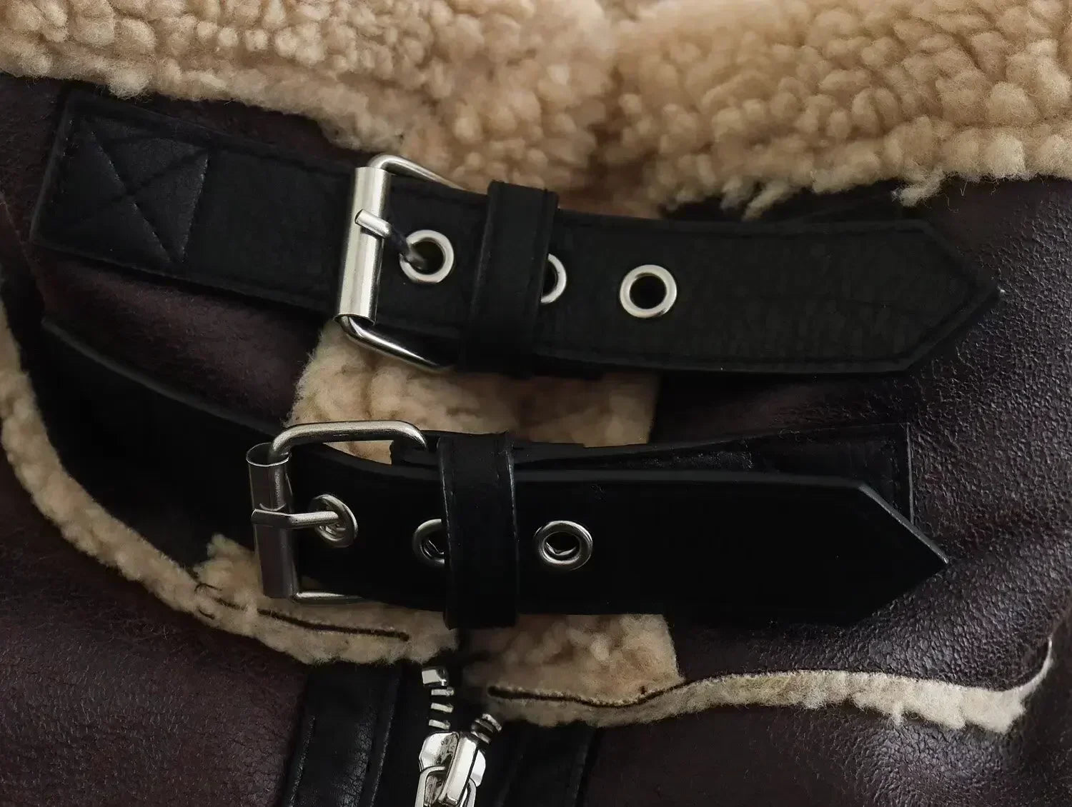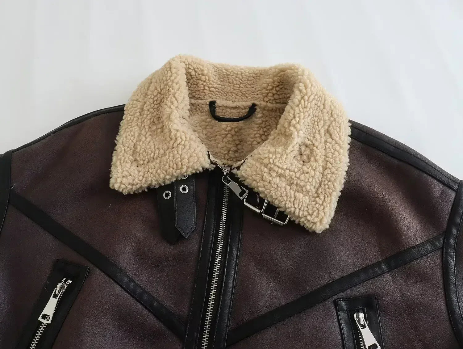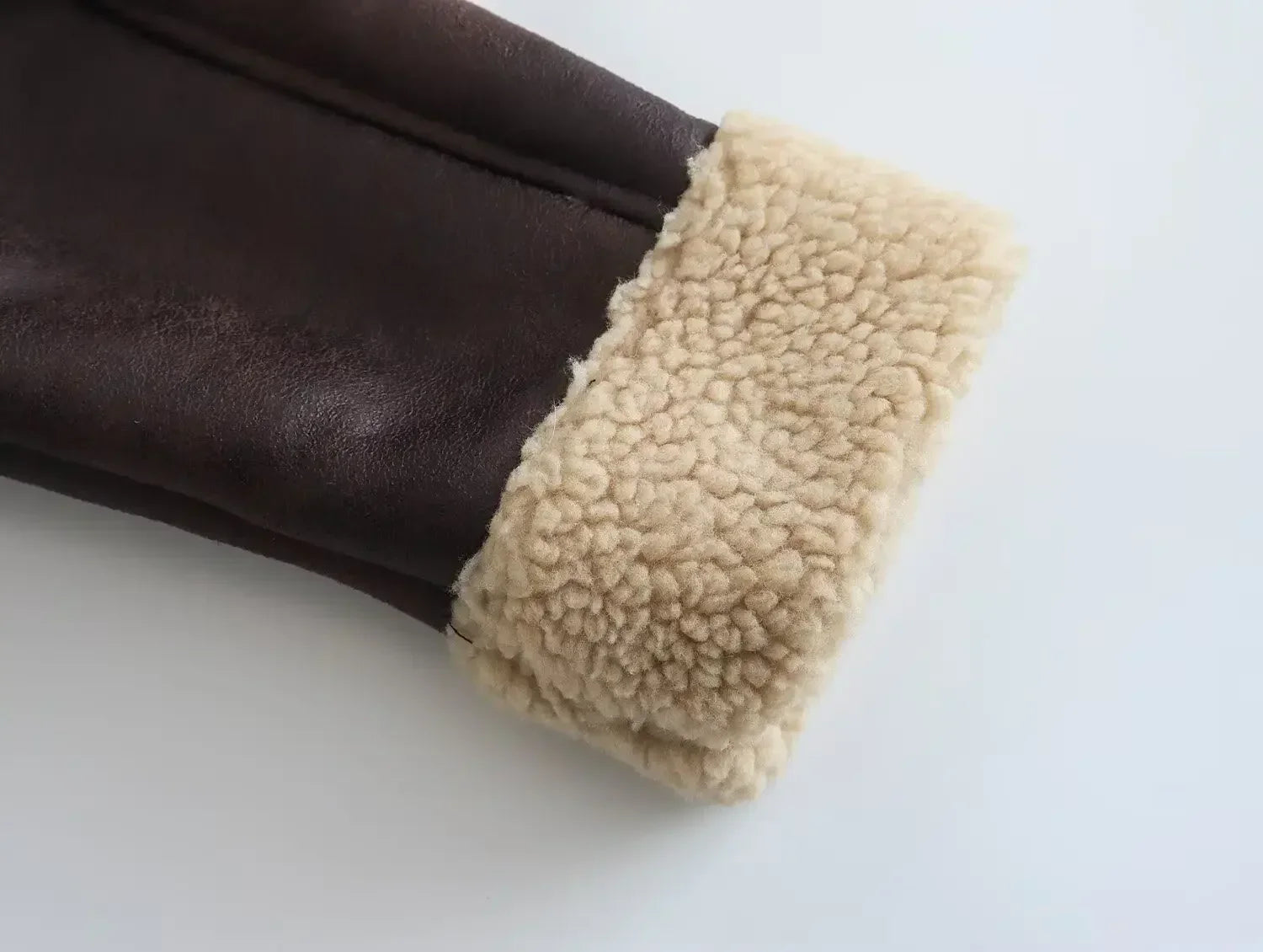 Women's winter New fashion with belt double-sided short Fur Faux Leather jacket retro long sleeved pocket women's Coat chic top